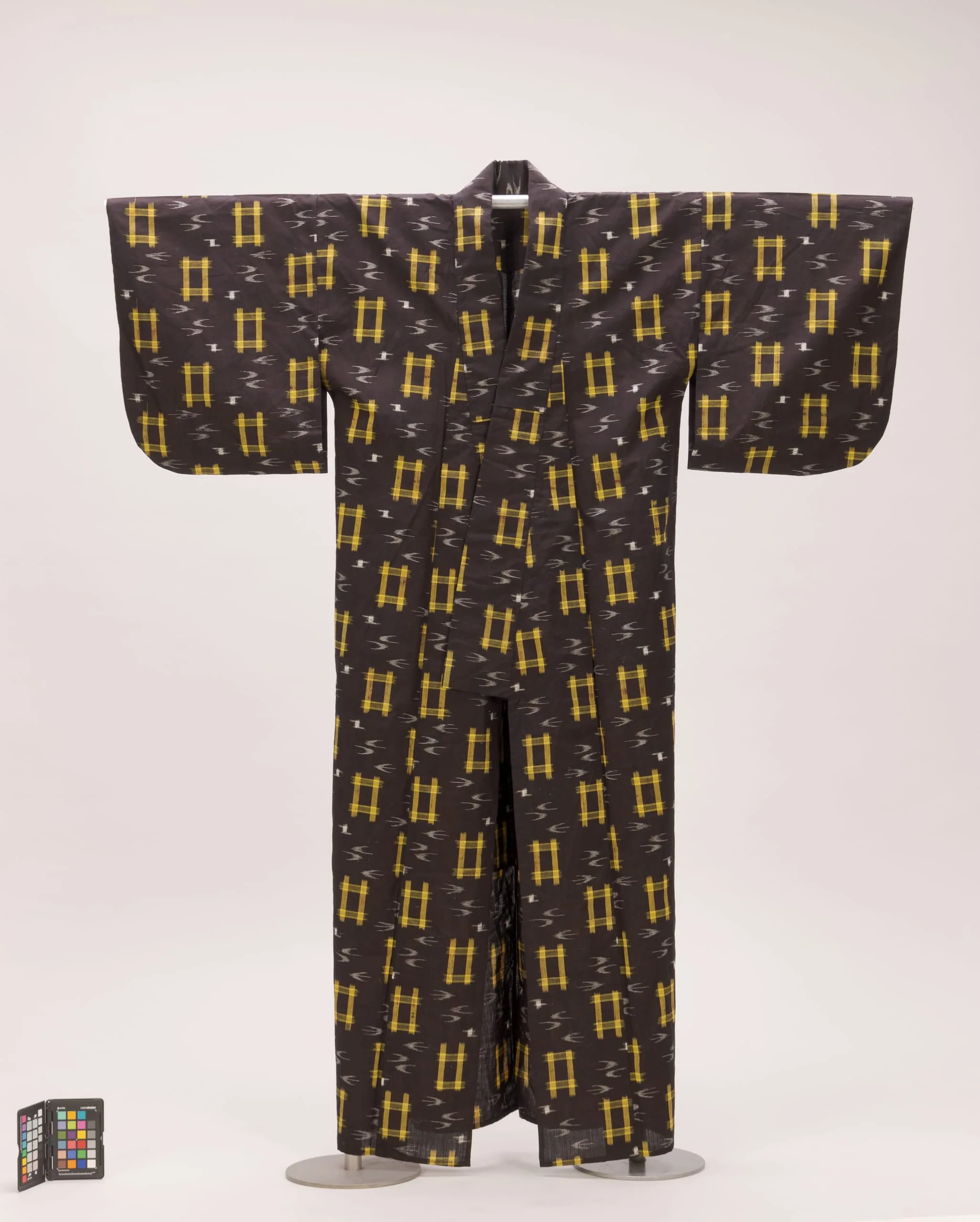 - Woman's Unlined Kimono (hitoe kosode) with Abstract Water Wells, Birds, and Water