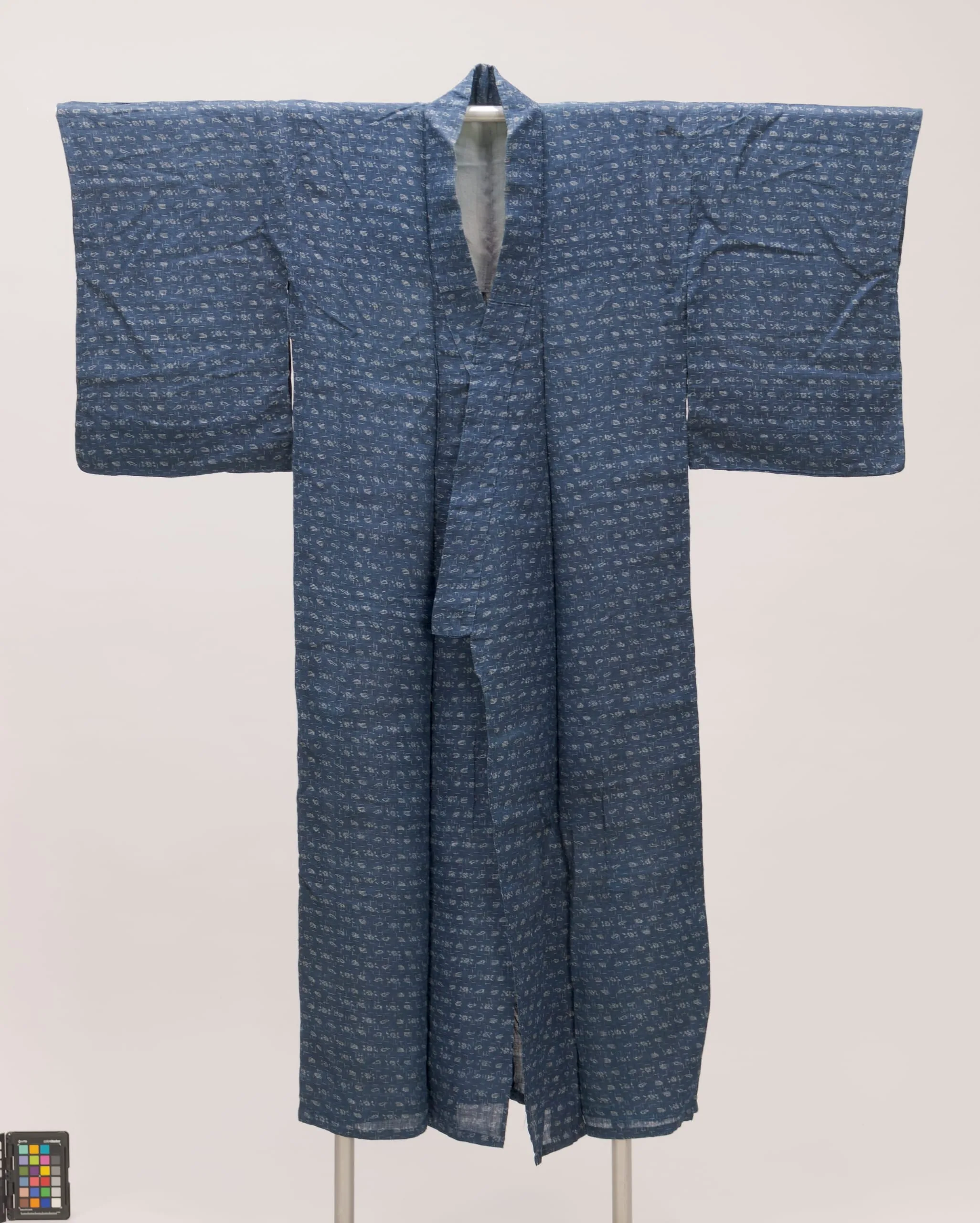 - Woman's Unlined Kimono (hitoe) with Gourds, Plum Blossoms, and Abstract Incense Sticks (Genjiko)
