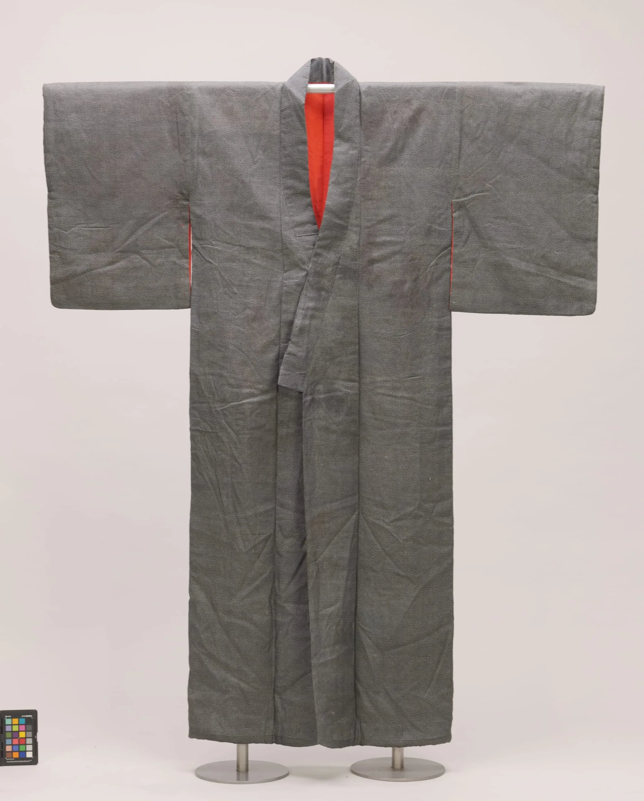 - Silk plain weave, stenciled paste-resist dyed (katazome komon)