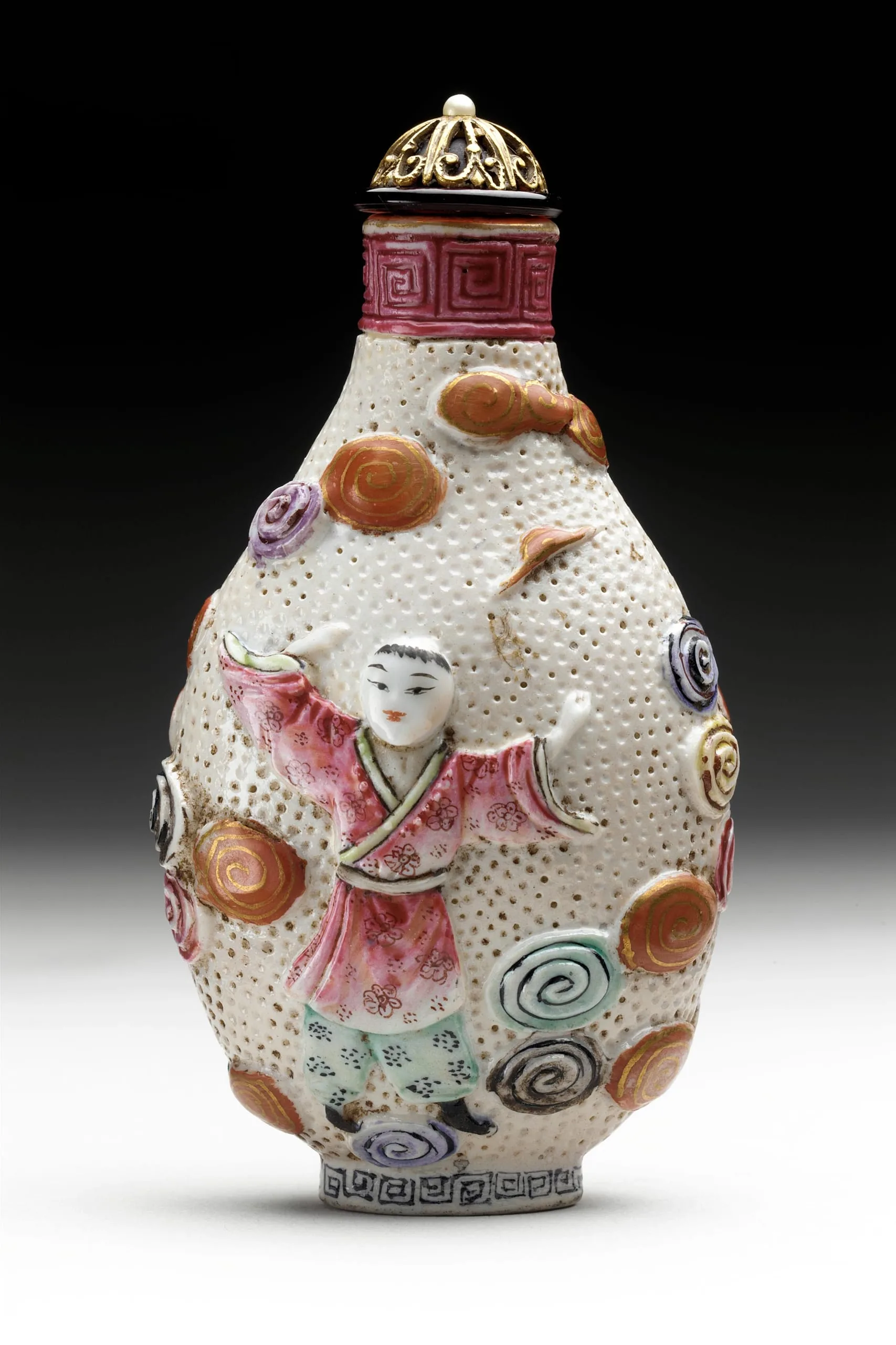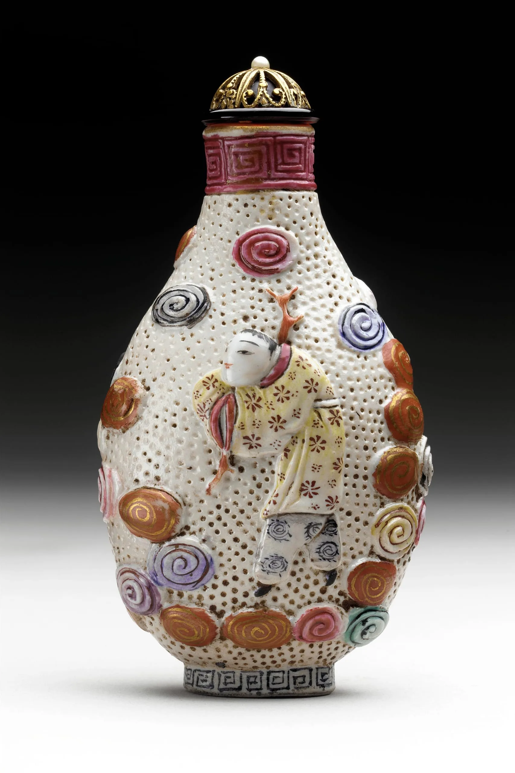 - Molded soft-paste porcelain with overglaze enamel and gilt decoration