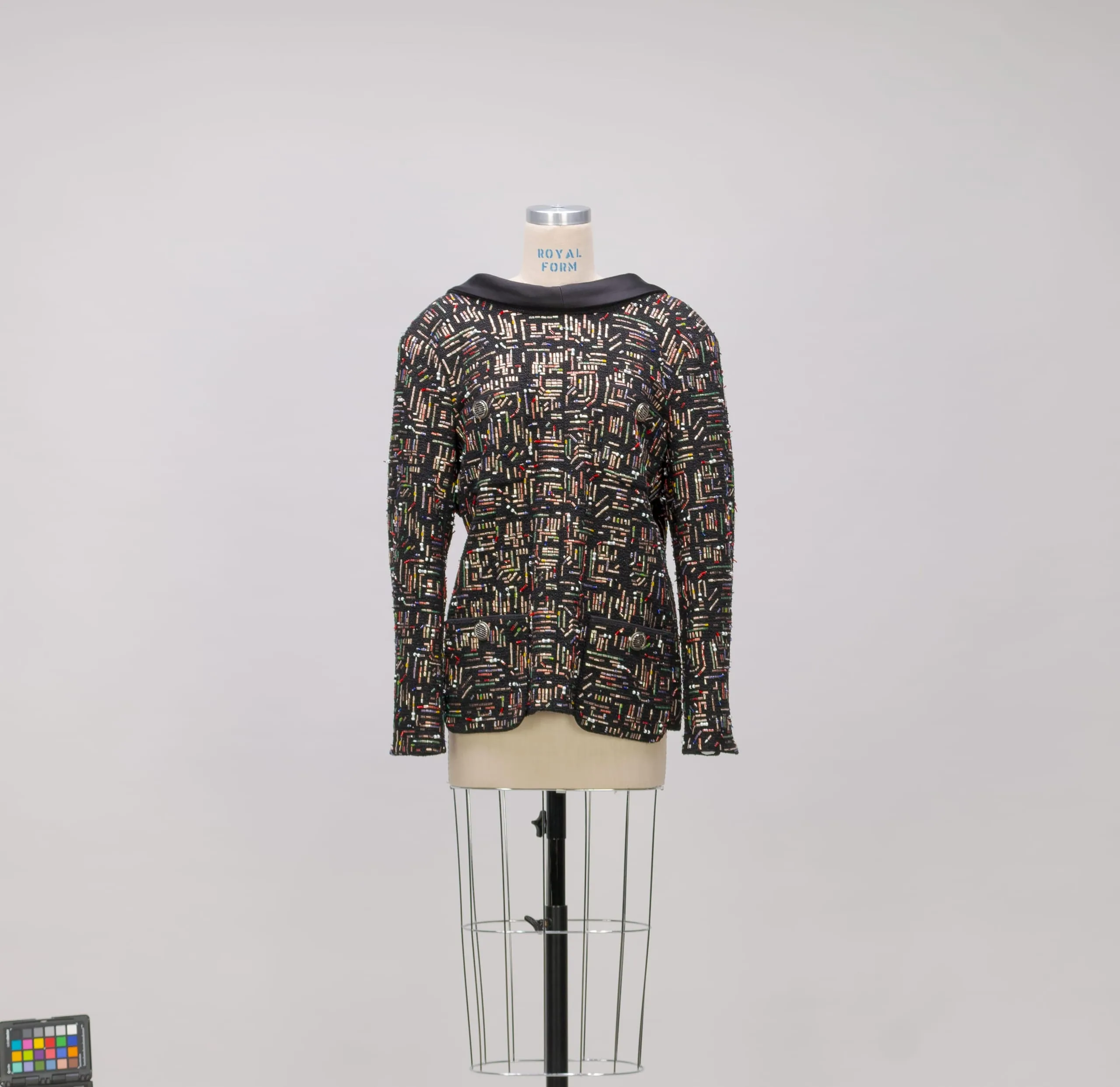 - Nylon, cotton, wool, and polyester twill weave and silk satin with metal and glass beads