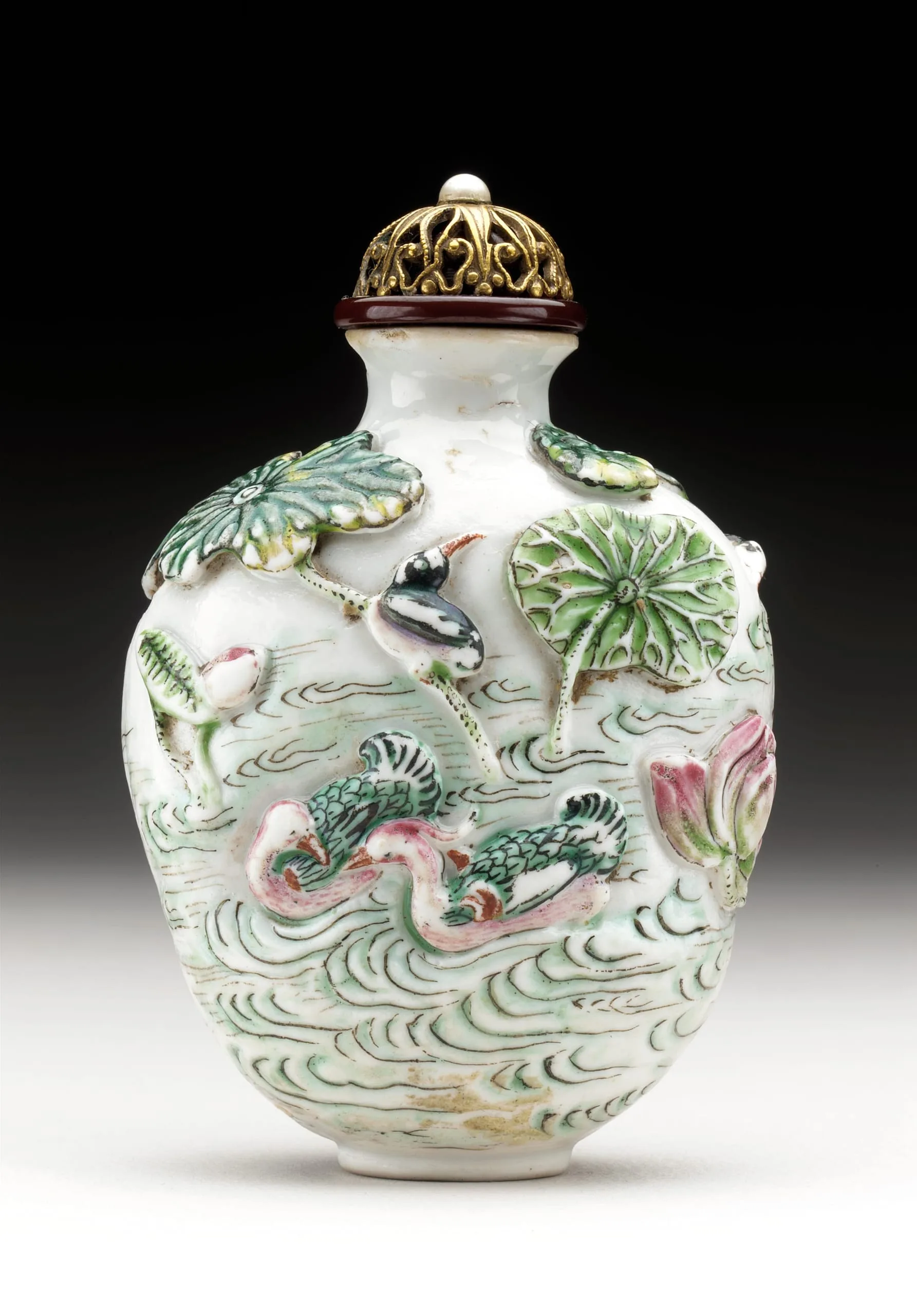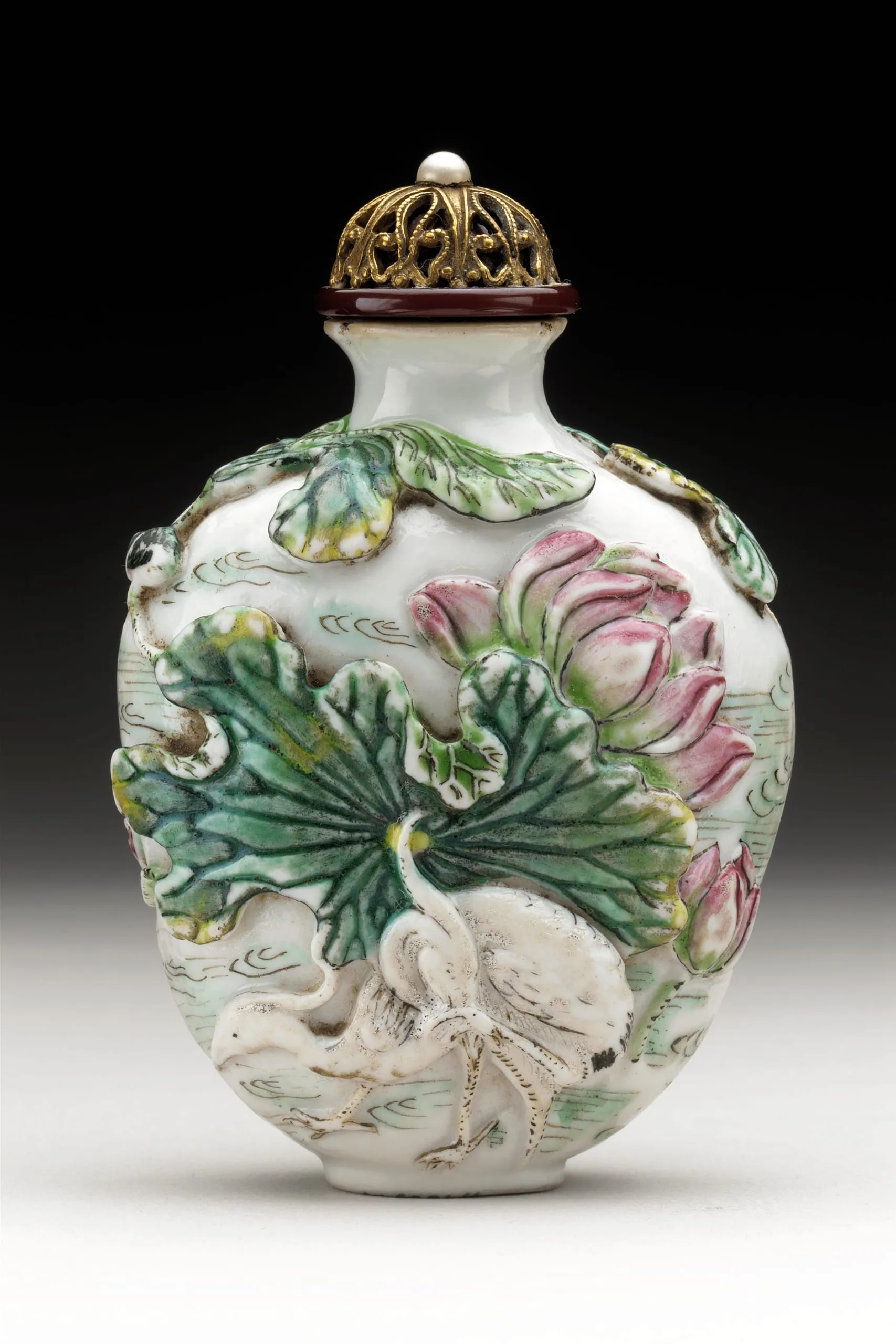 - Snuff Bottle (Biyanhu) with Lotus and Water Birds