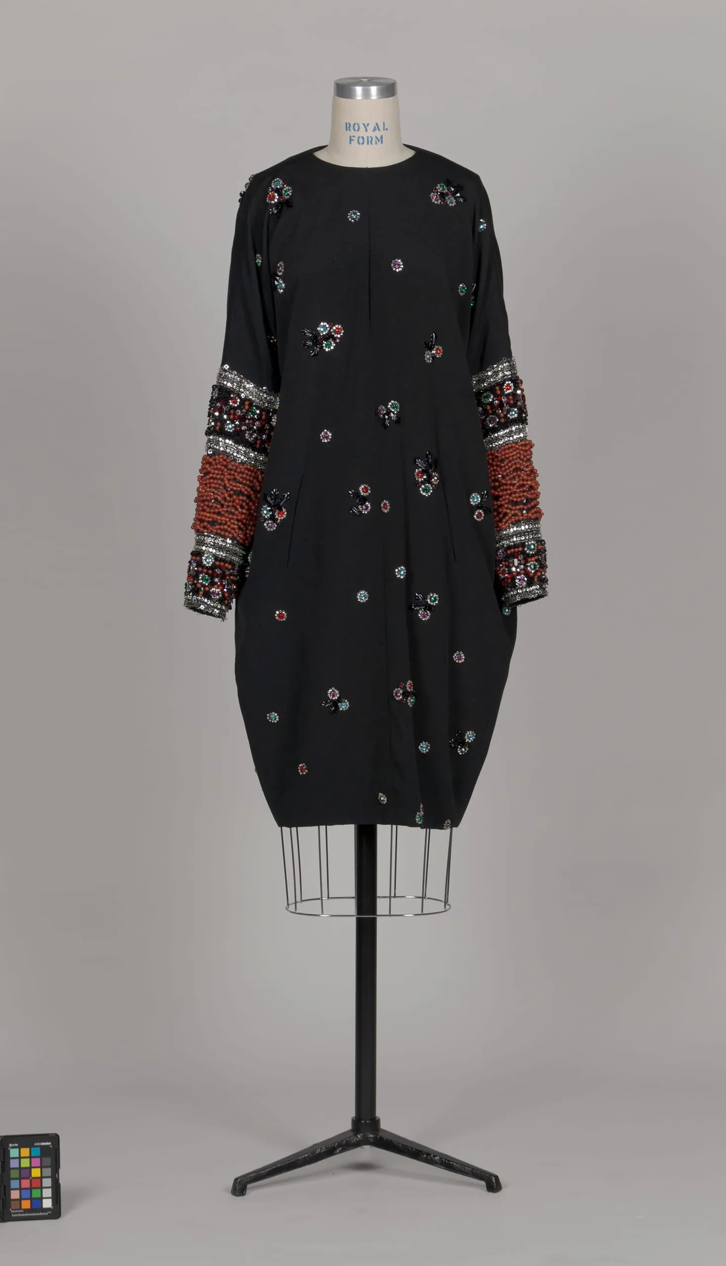 - Silk plain weave (crepe) with crystals and plastic sequins