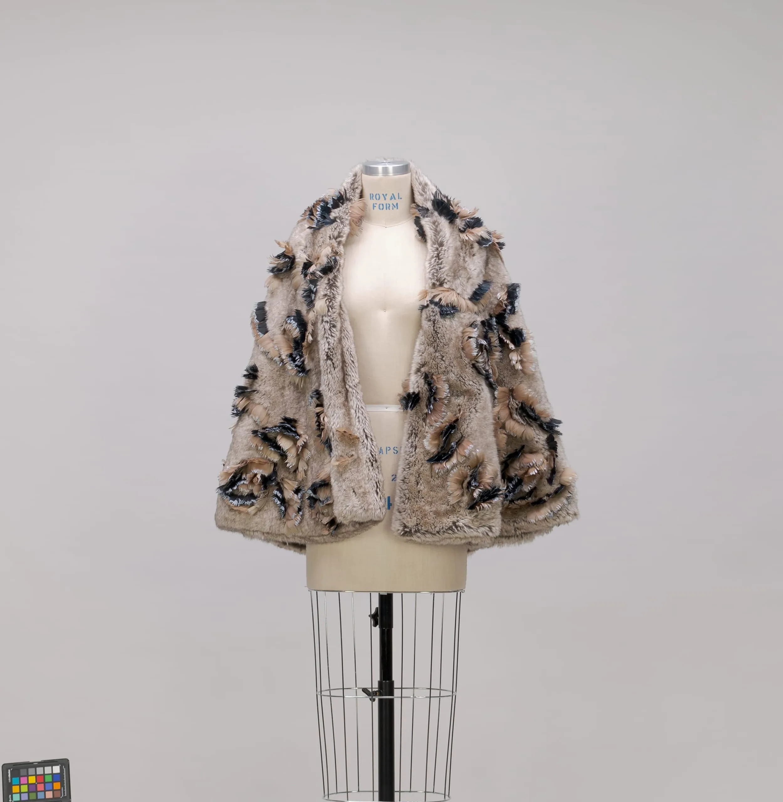 - Silk plush with chicken feather appliqués