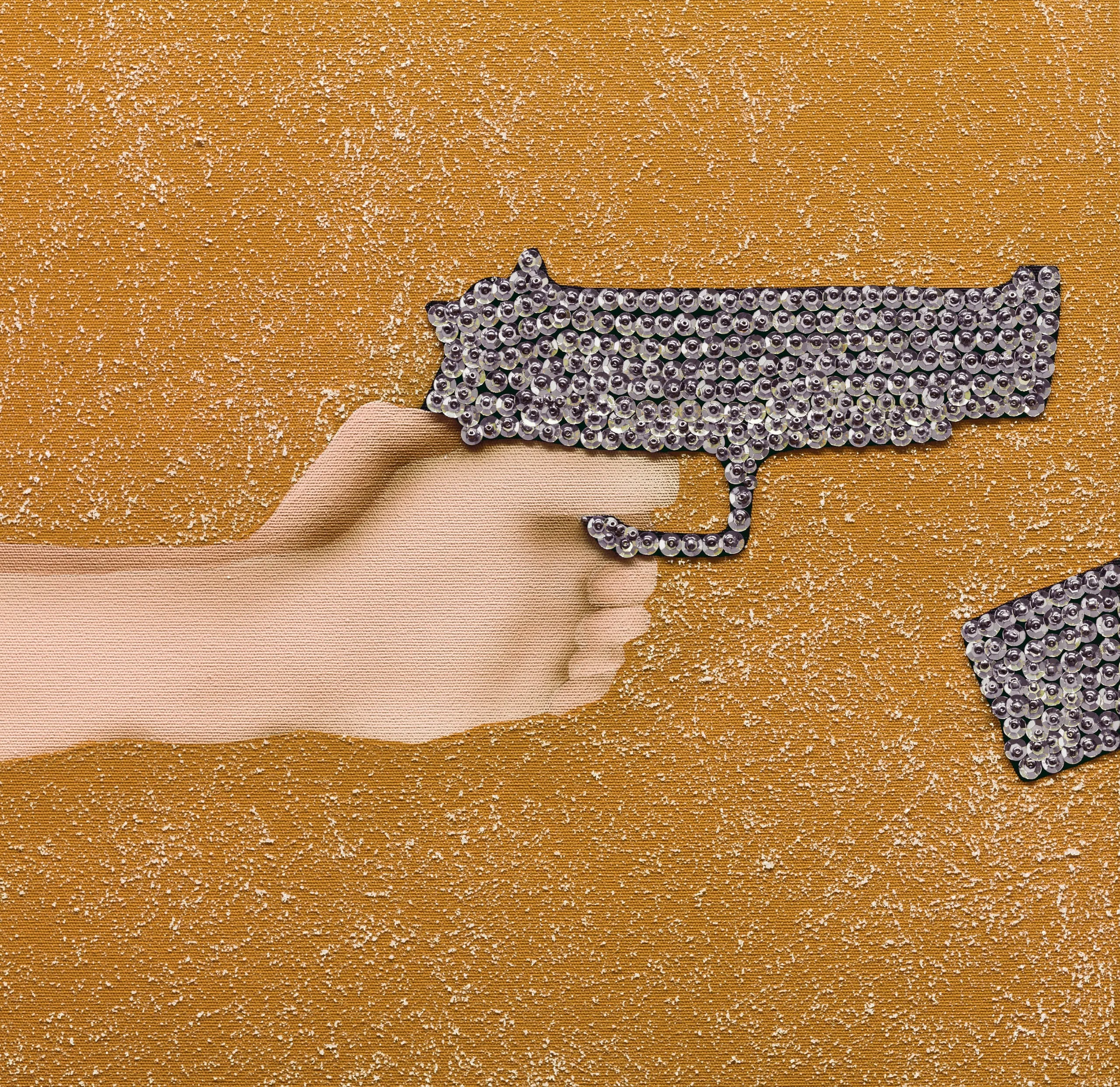 inspired by pulp fiction, her strongly narrative yet enigmatic paintings are dominated by women, often brandishing knives or guns