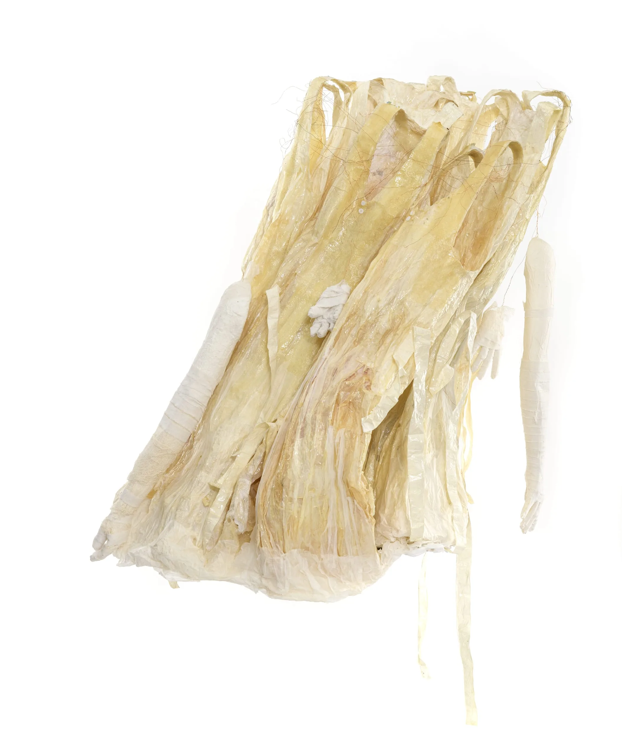 of the same vulnerabilities as the human body. Tiny, pearl-like buttons on the dress reinforce this sense of fragility and perhaps