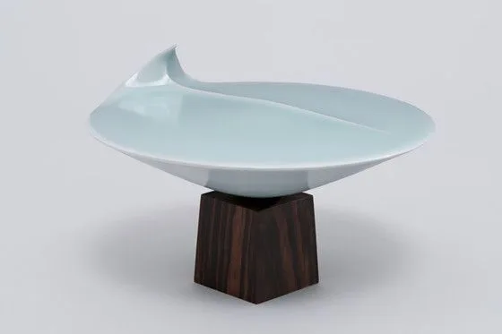 - Porcelain with light blue celadon glaze (seihakuji) with ebony wood foot
