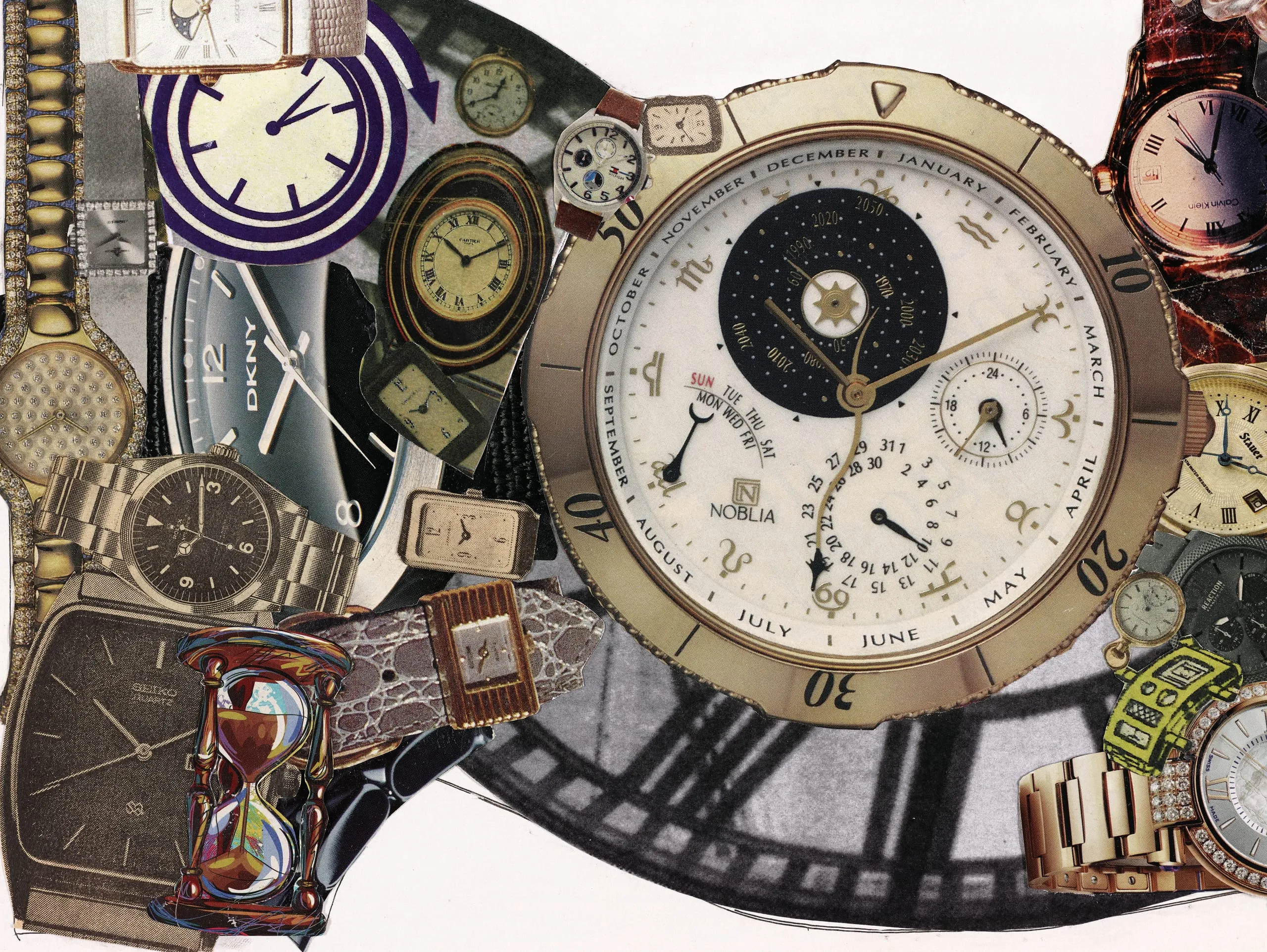 - Collage of magazine clippings, graphite, and colored pencil on paper