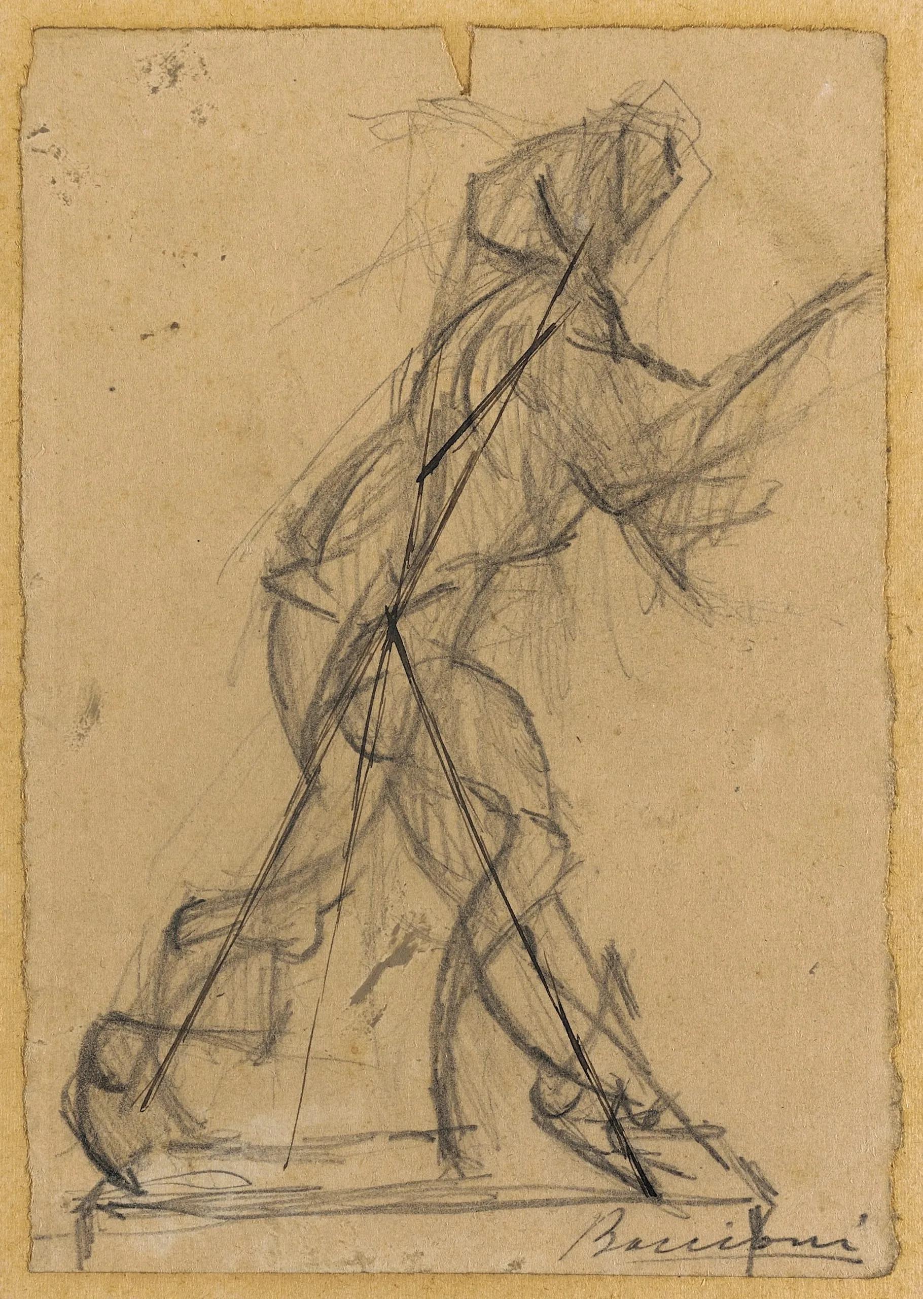 - Ink and pencil on paper, laid down