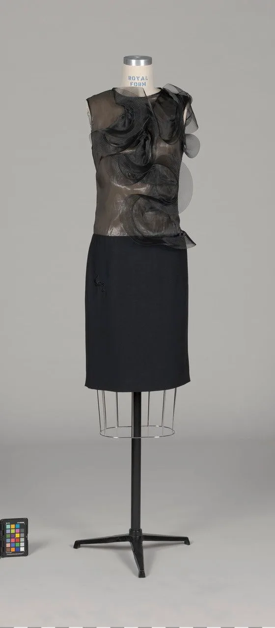 - Silk plain weave (crepe), and synthetic plain weave with nylon horsehair trim