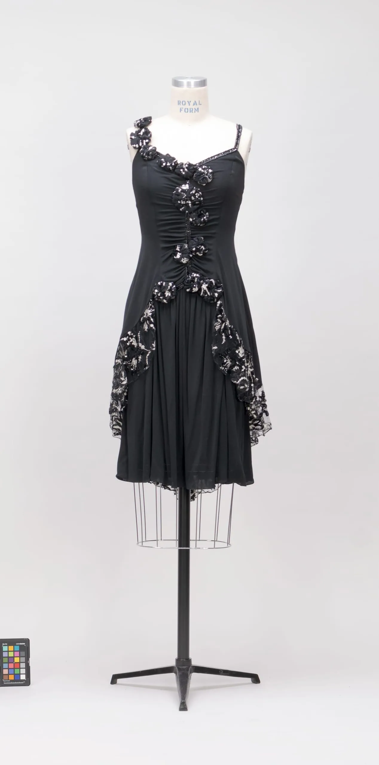 - Synthetic knit with nylon net and plastic sequin appliqués