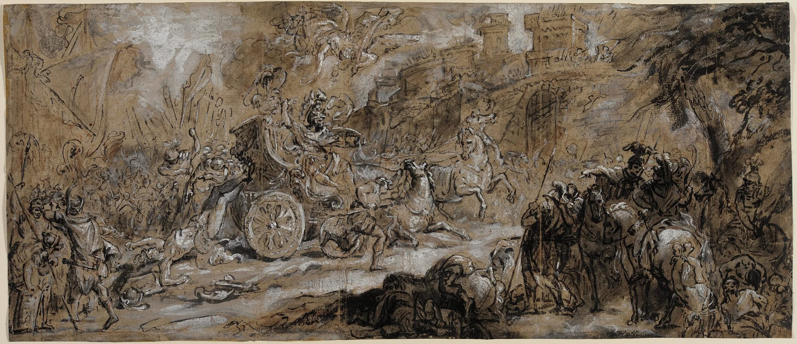 - Red chalk, brush and black ink, and wash heightened with white (recto); black chalk (verso)
