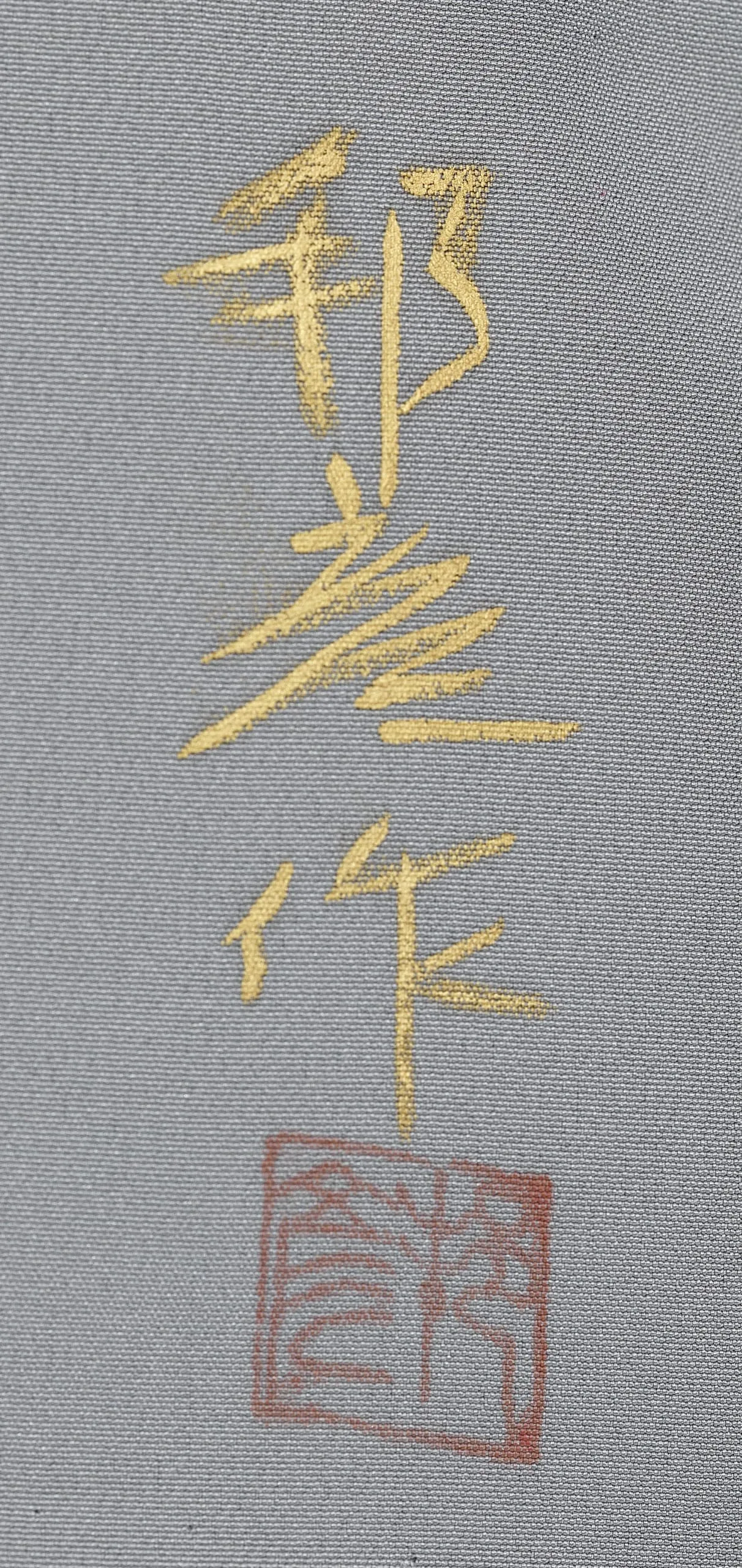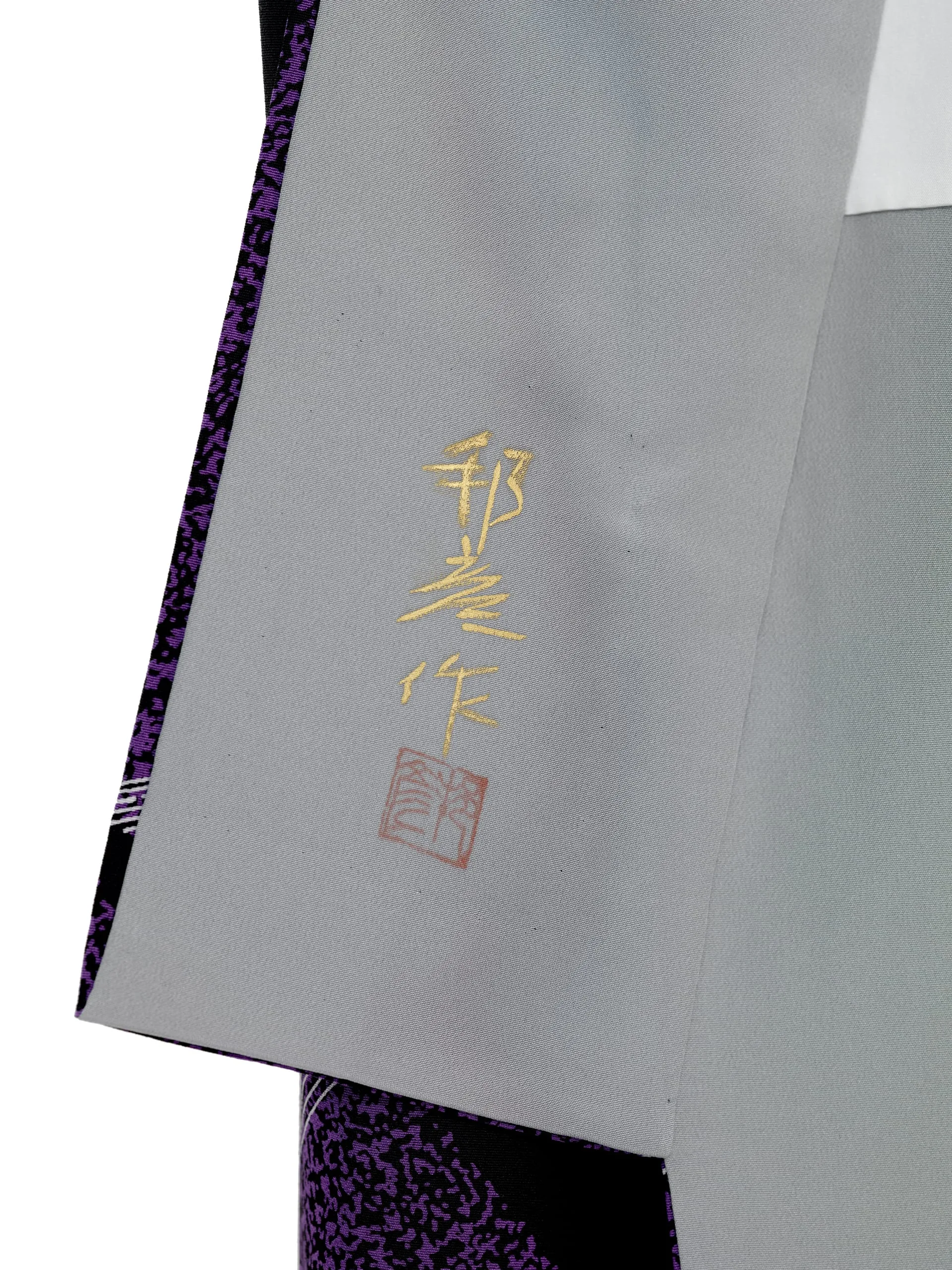 - Silk plain weave (crepe; chirimen), free hand paste-resist dyed (yūzen)