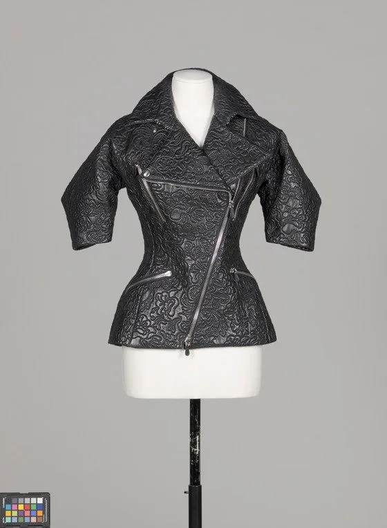 - Suit: leather, quilted; Shoes: leather, metal, and plastic