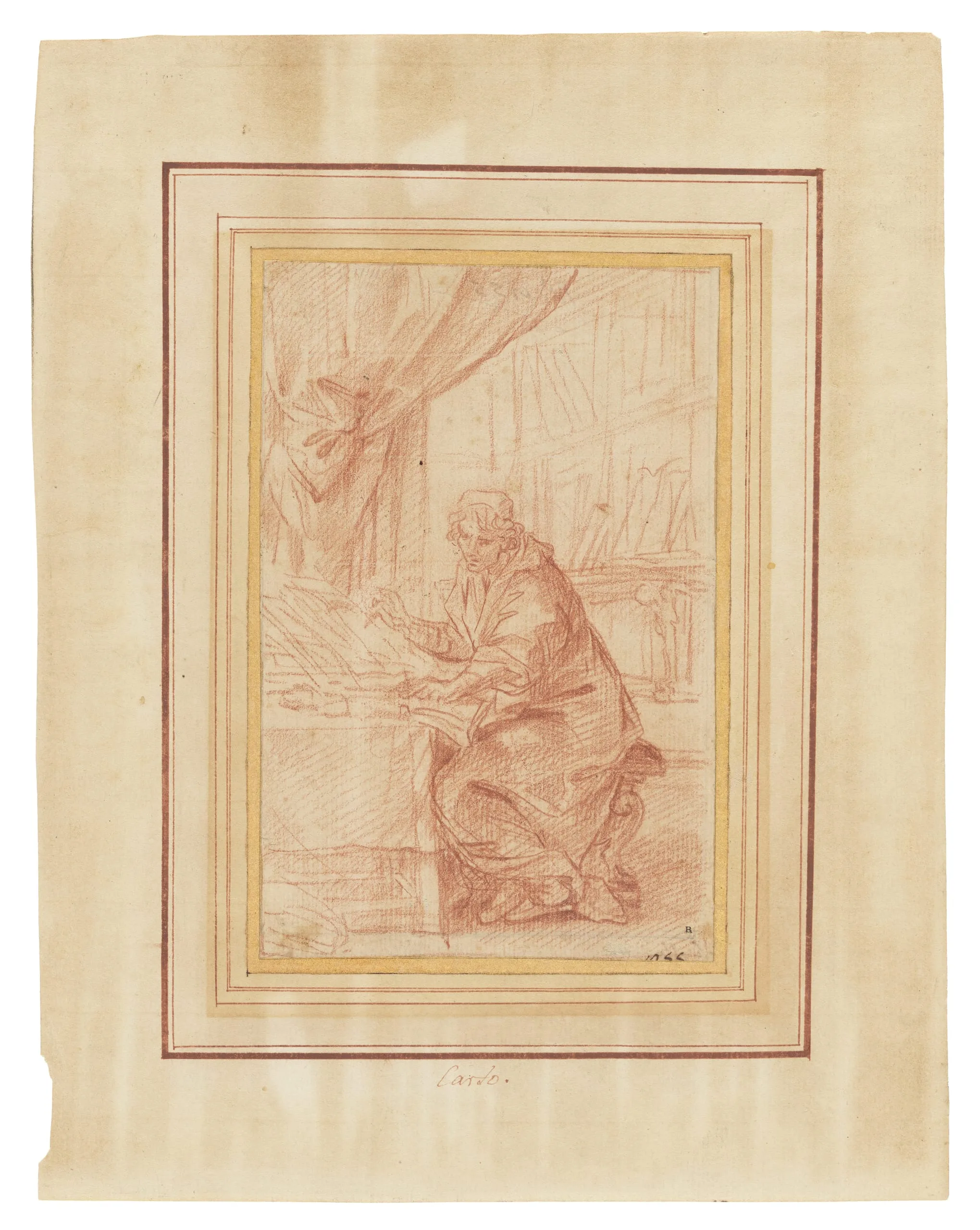 - Red chalk on cream laid paper