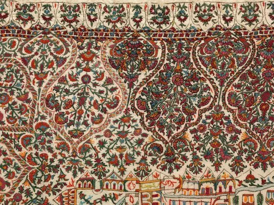 - Goat-fleece underdown (pashm) twill with goat-fleece underdown embroidery