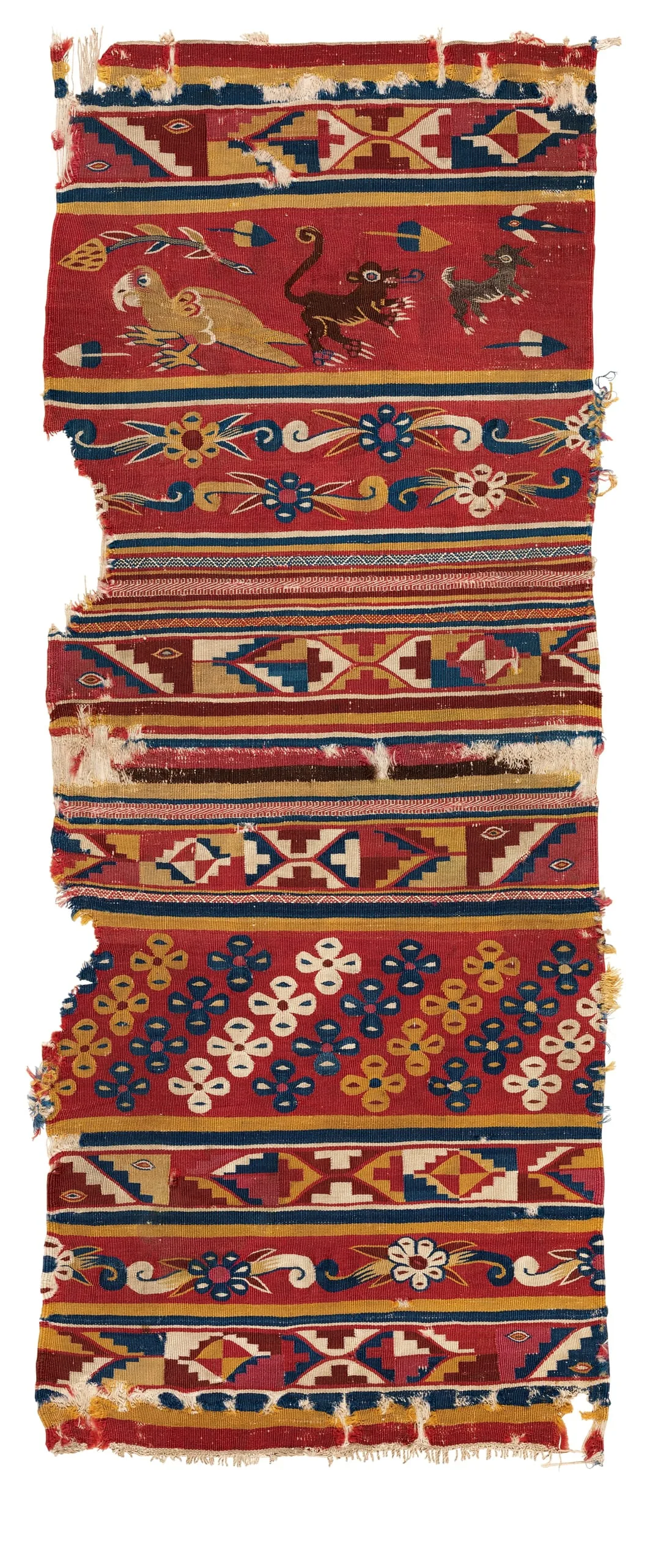 - Coca Bag (Ch’uspa) Fragment with Birds, Animals, and Floral and Geometric Patterns (Fragmento de bolsa de coca [ch’uspa] con motivos animales, florales y geométricos)