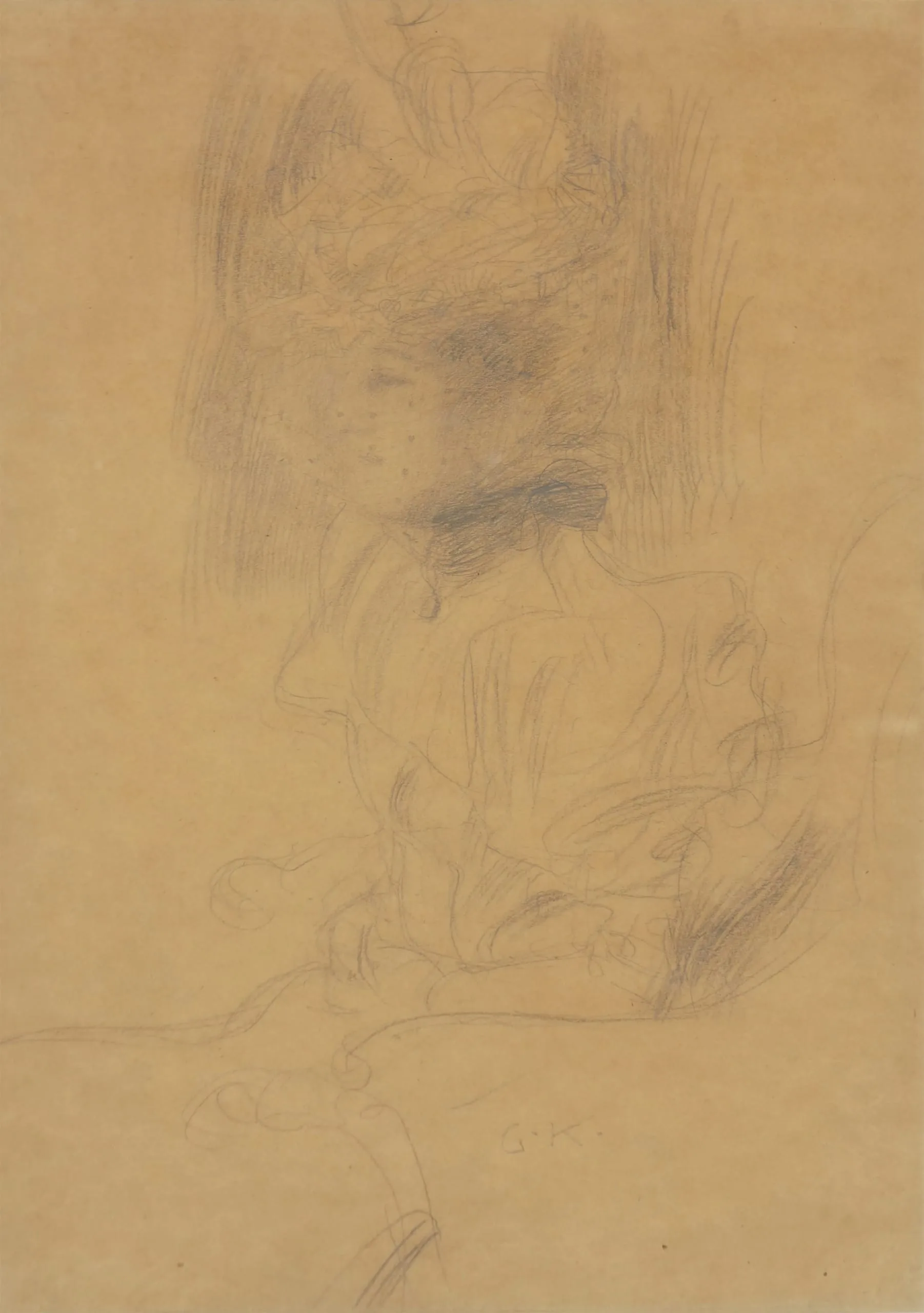 - Pencil on brownish paper