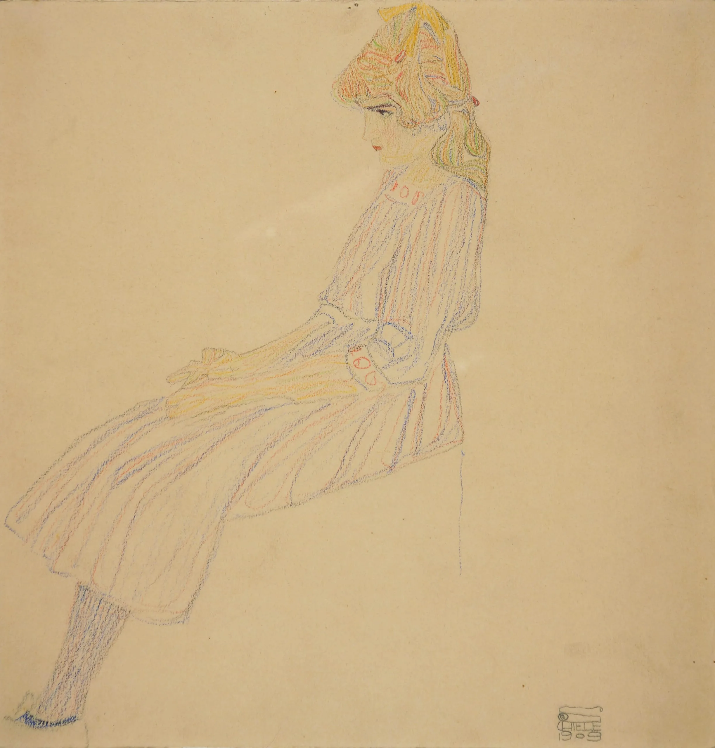 - Seated Girl in Striped Dress
