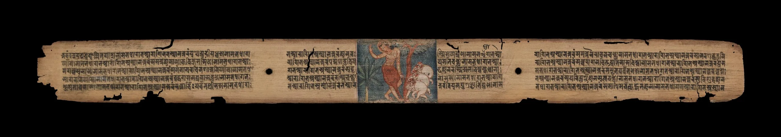 - Opaque watercolor and ink on palm leaf
