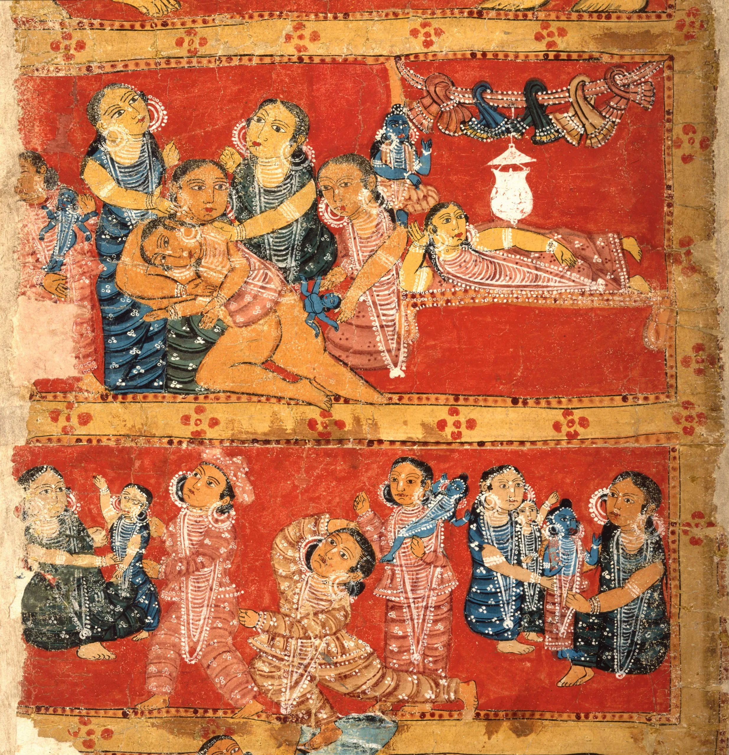 3. Left: Vasudeva takes Krishna away to switch him with Yogamaya.