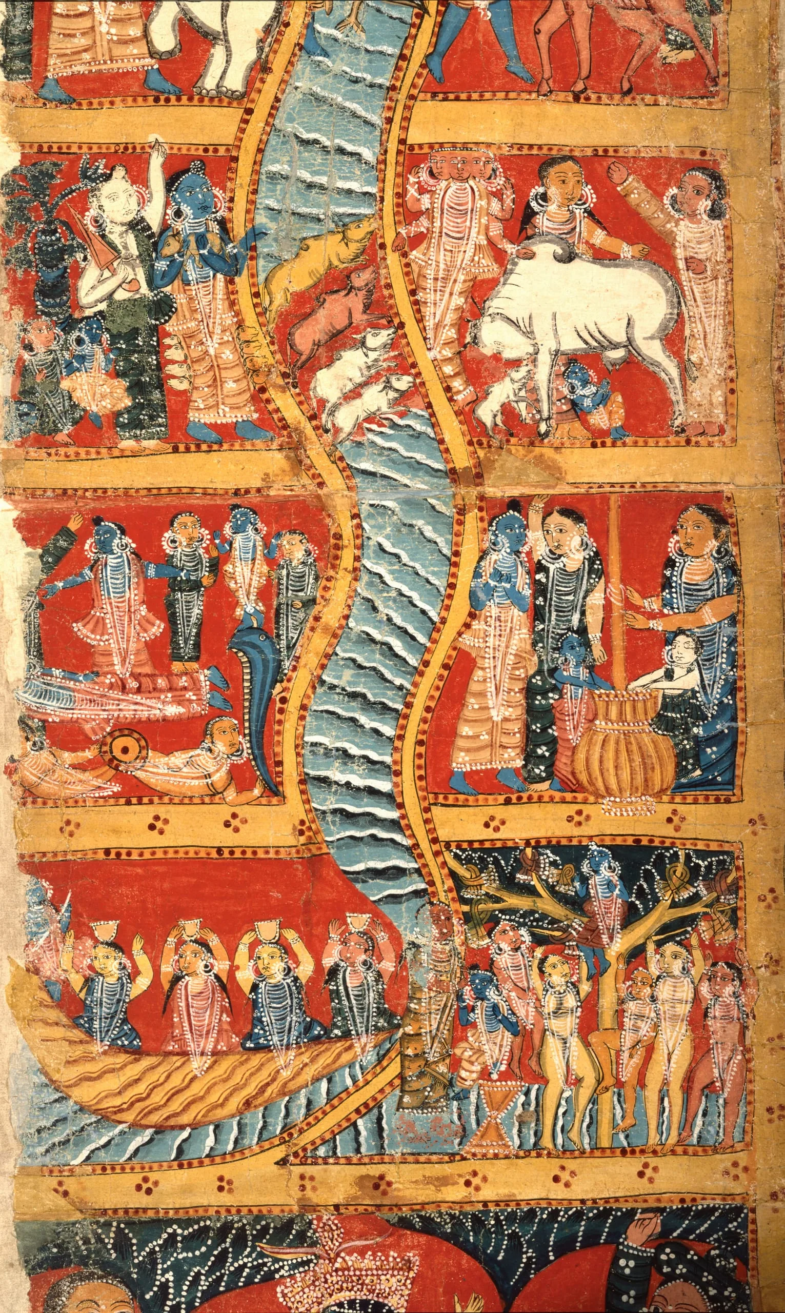 8. Left: Krishna ferries the gopis (milkmaids) to market and flirts with them.
