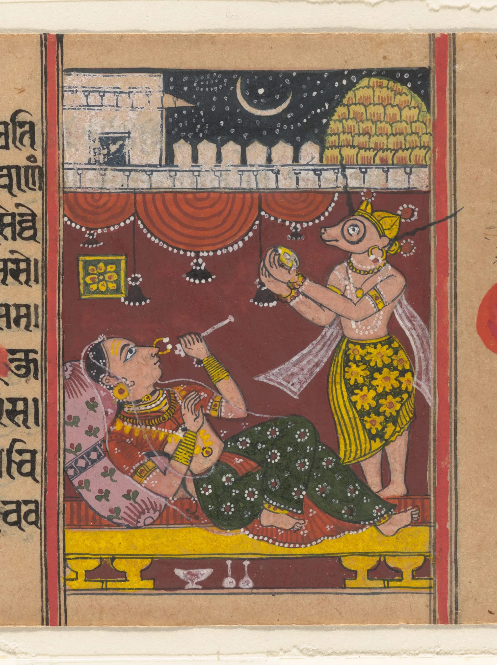 - Harinegameshin Brings the Embryo of Jina Mahavira to Queen Trishala, Folio from a Kalpasutra (Book of Sacred Precepts)