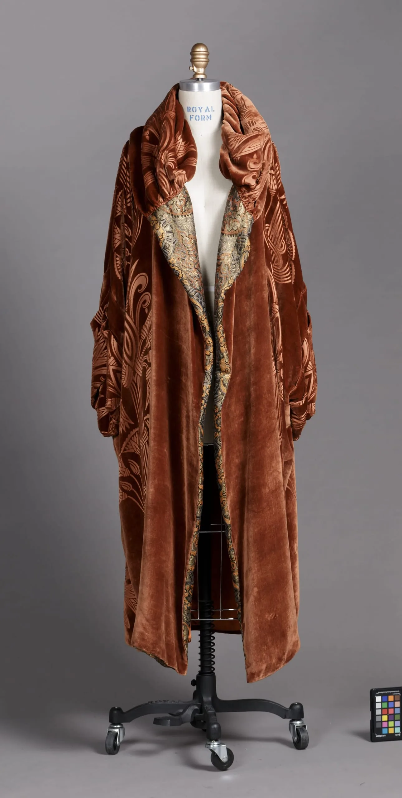 - Cut and voided silk velvet and silk and metallic thread twill with silk warp patterning