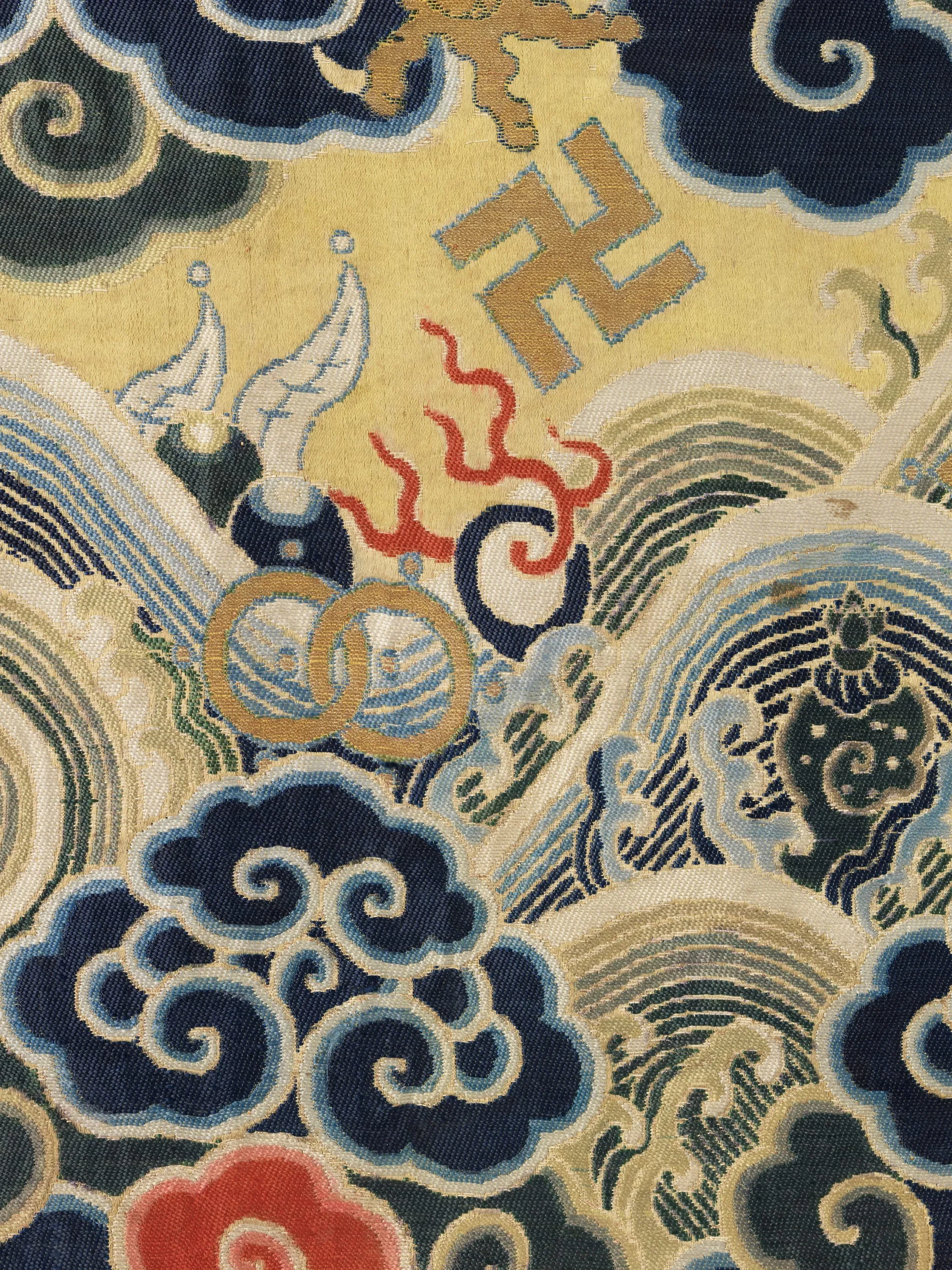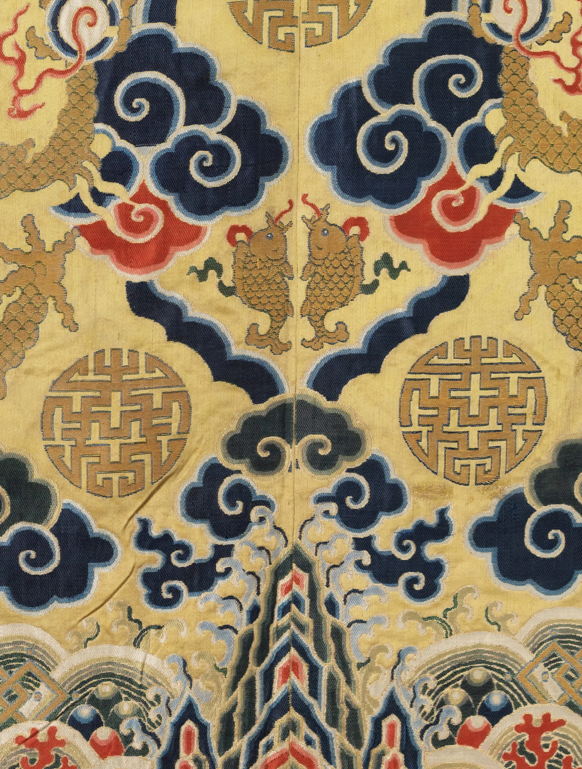 - Silk satin with silk and metallic-thread supplementary-weft patterning