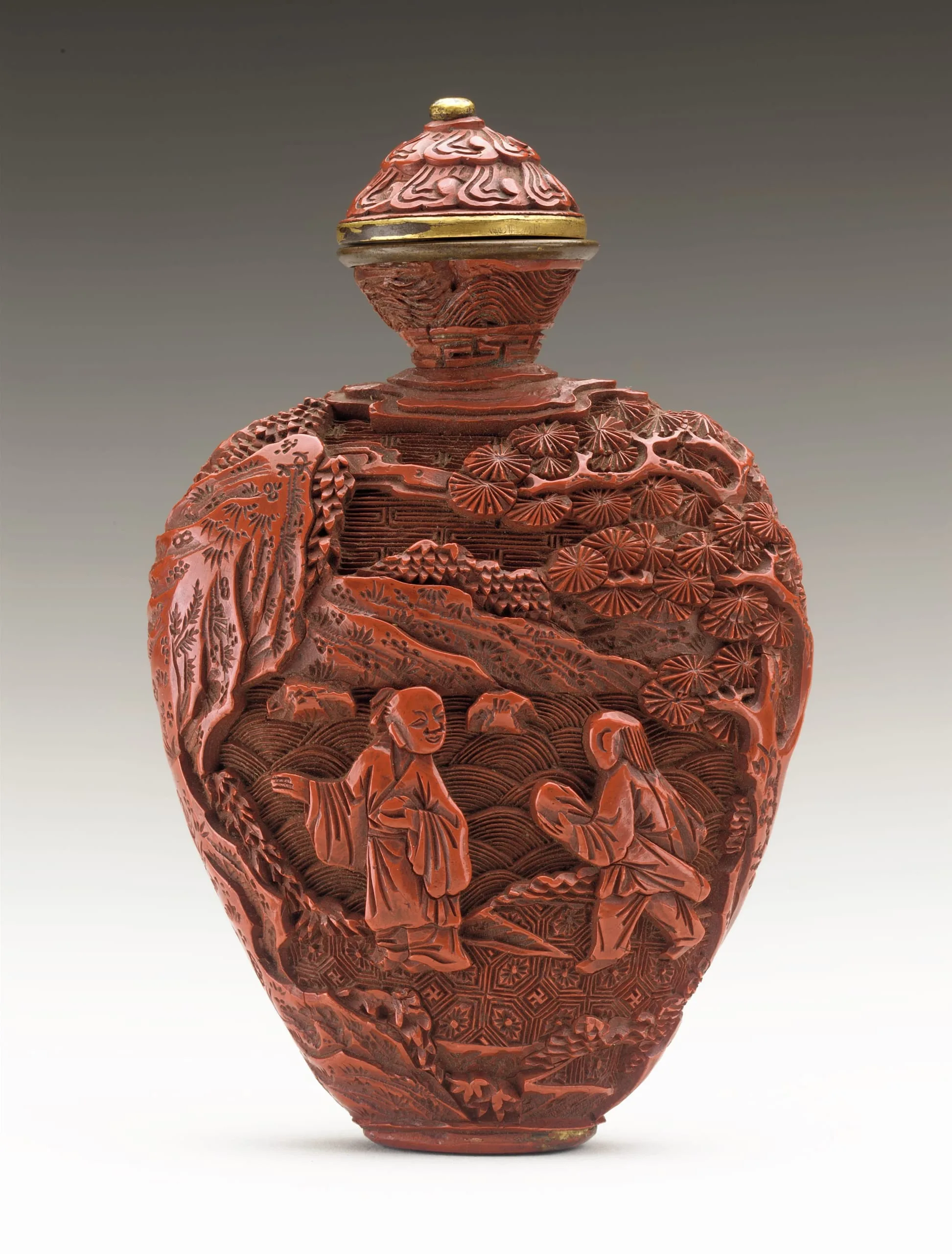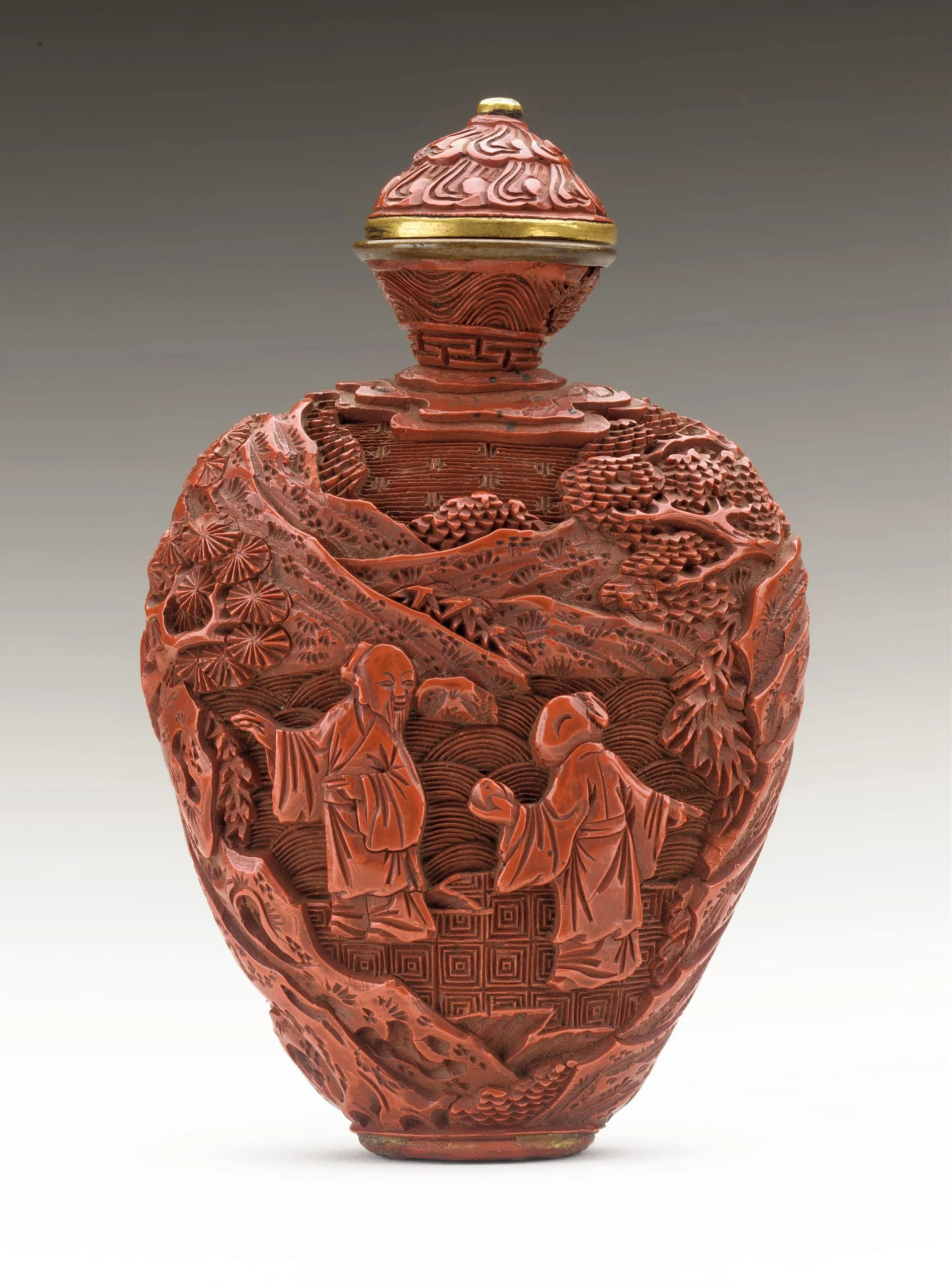 - Snuff Bottle (Biyanhu) with Sages in Landscape