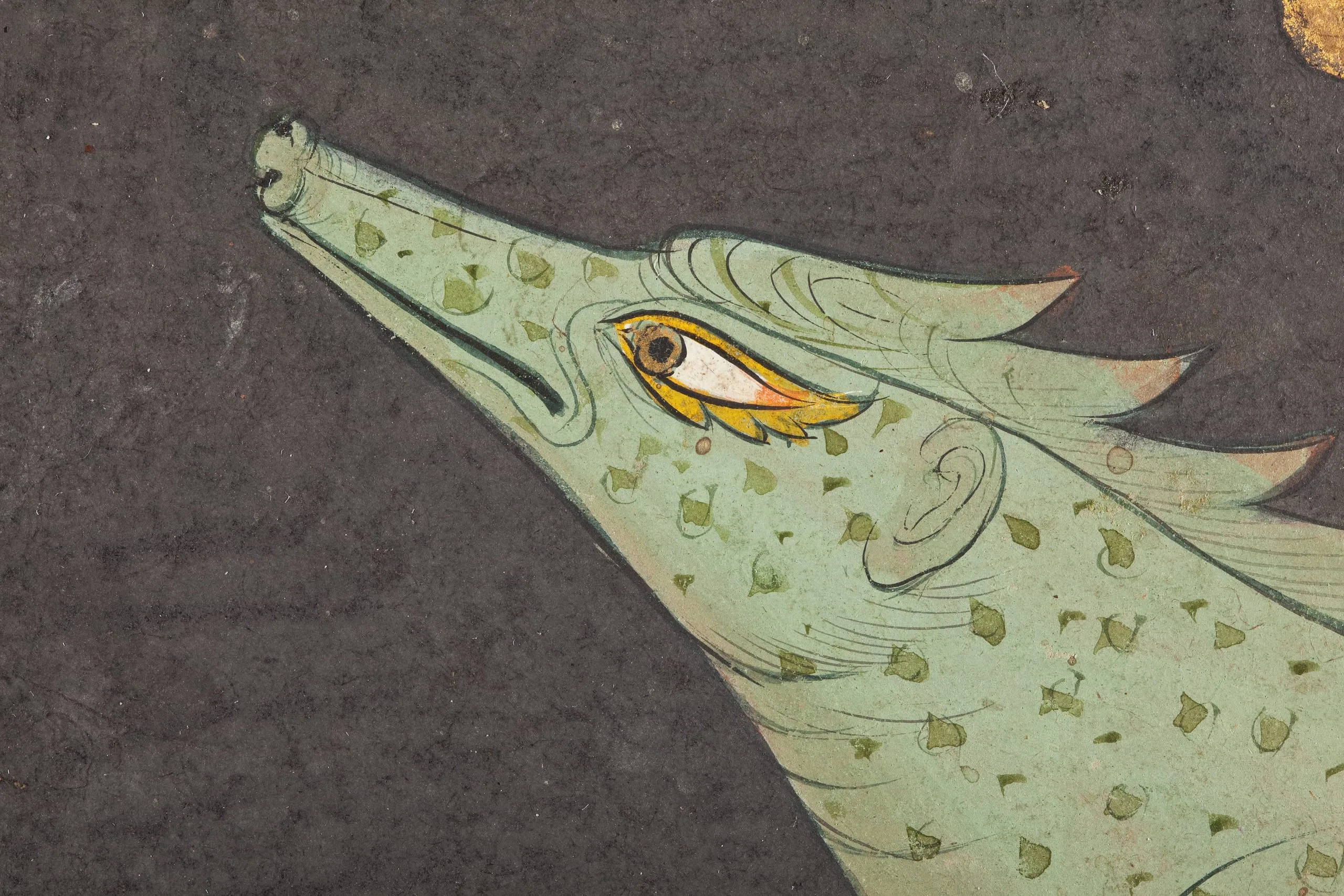 - Opaque watercolor, gold, and ink on paper
