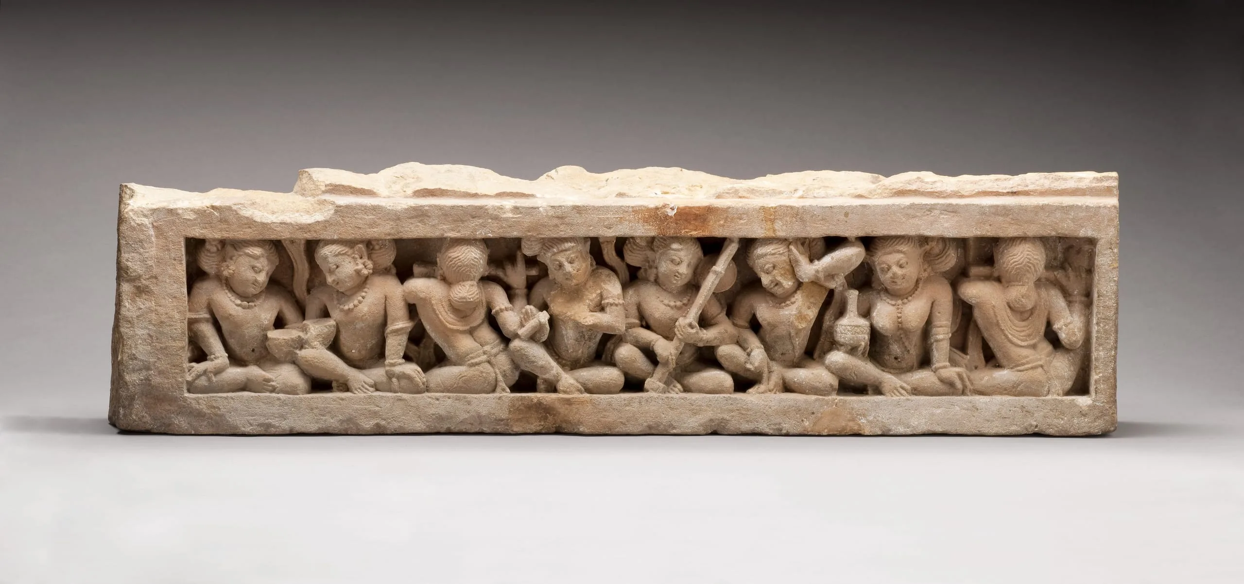 Additional musical friezes from the Purana Mahadeva temple are in the Nelson-Atkins Museum of Art, Kansas City, MO (35-304), Cleveland Museum of Art (1969.34), and Government Museum, Sikar.