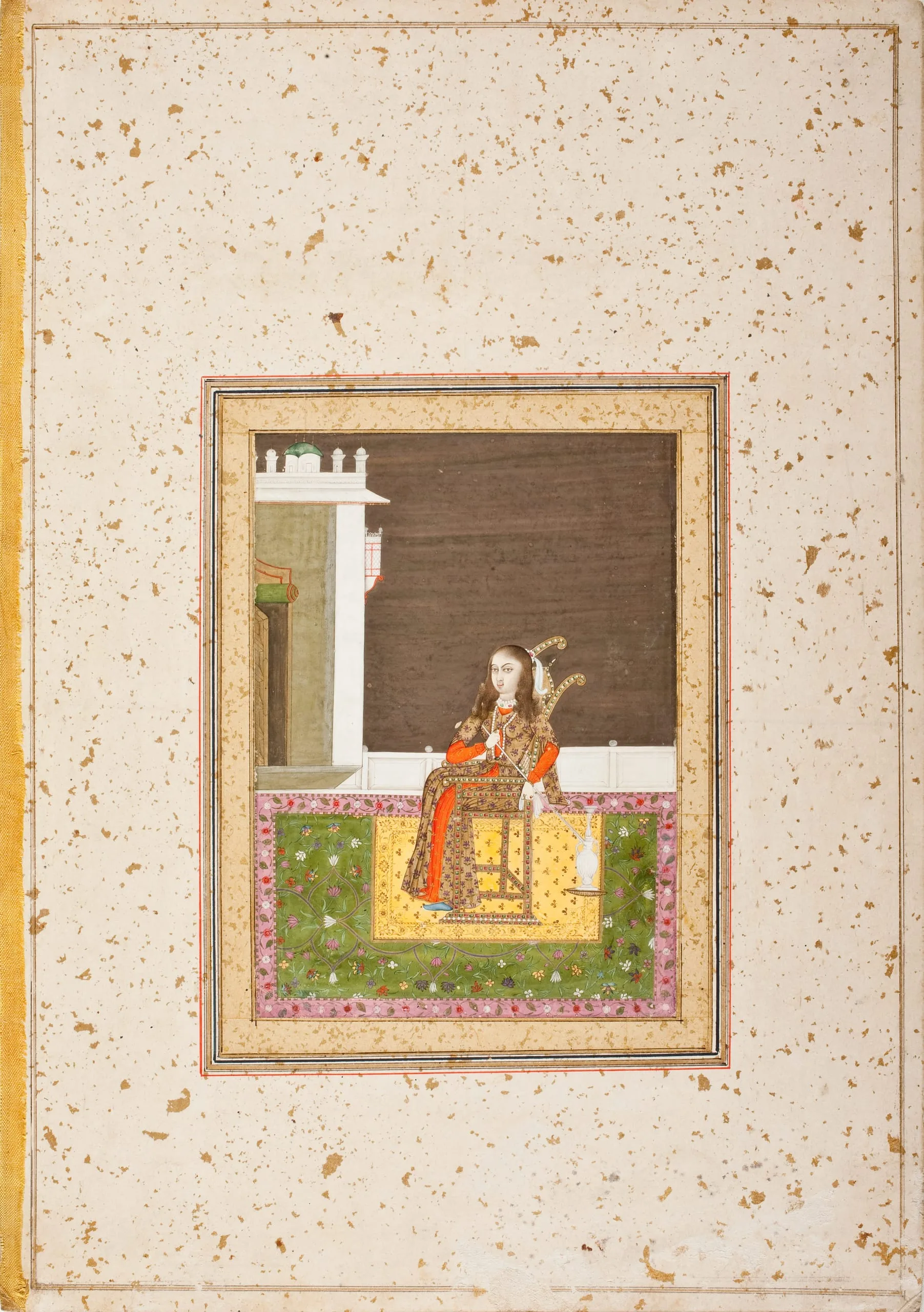 - European Woman Seated on a Terrace Smoking a Venetian-Style Hookah, Folio from an Album Belonging to Nawab Shuja al-Daula (r. 1754-1775)