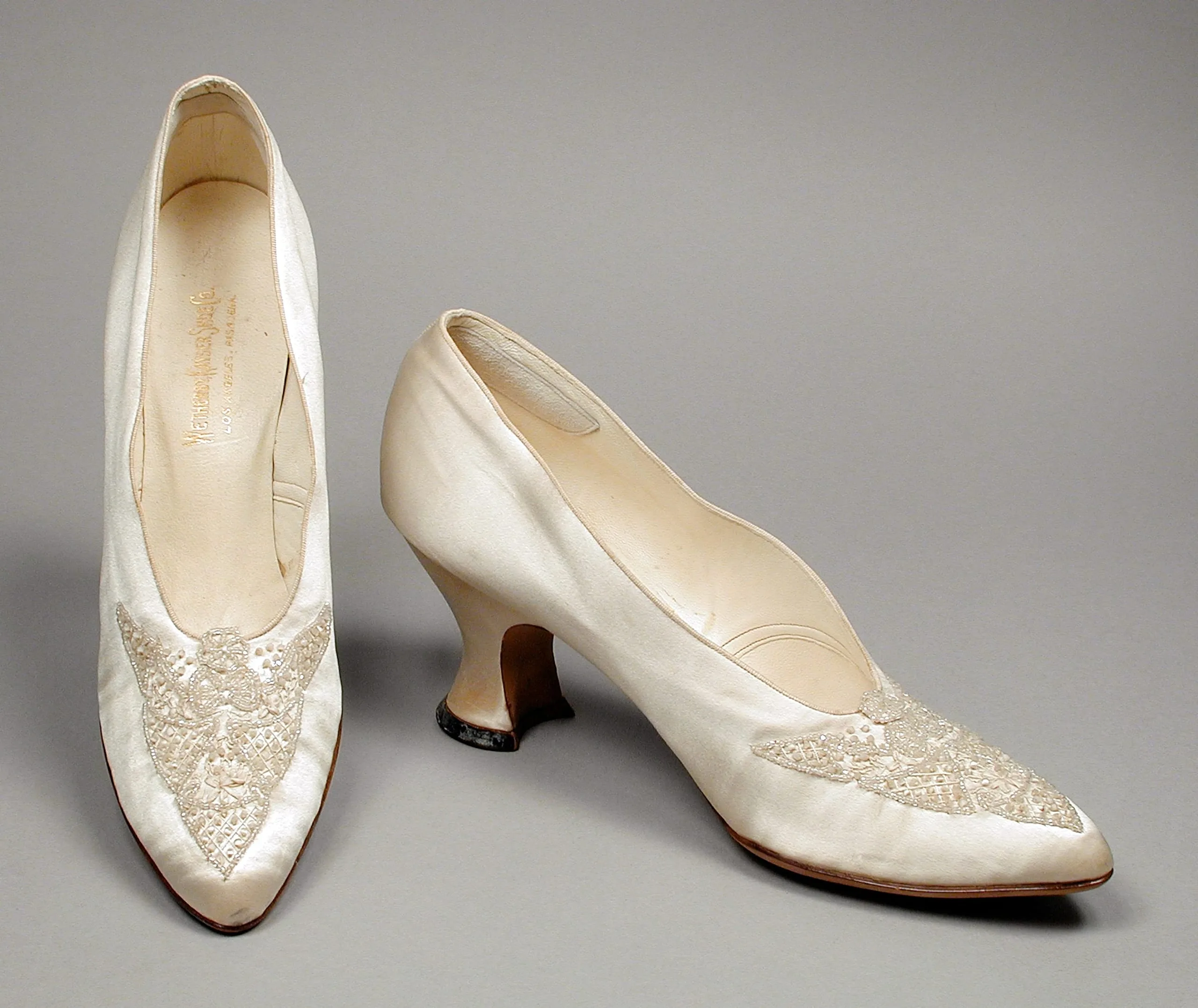 - Silk satin with glass beads, silk and silk plain weave ribbon embroidery, and leather