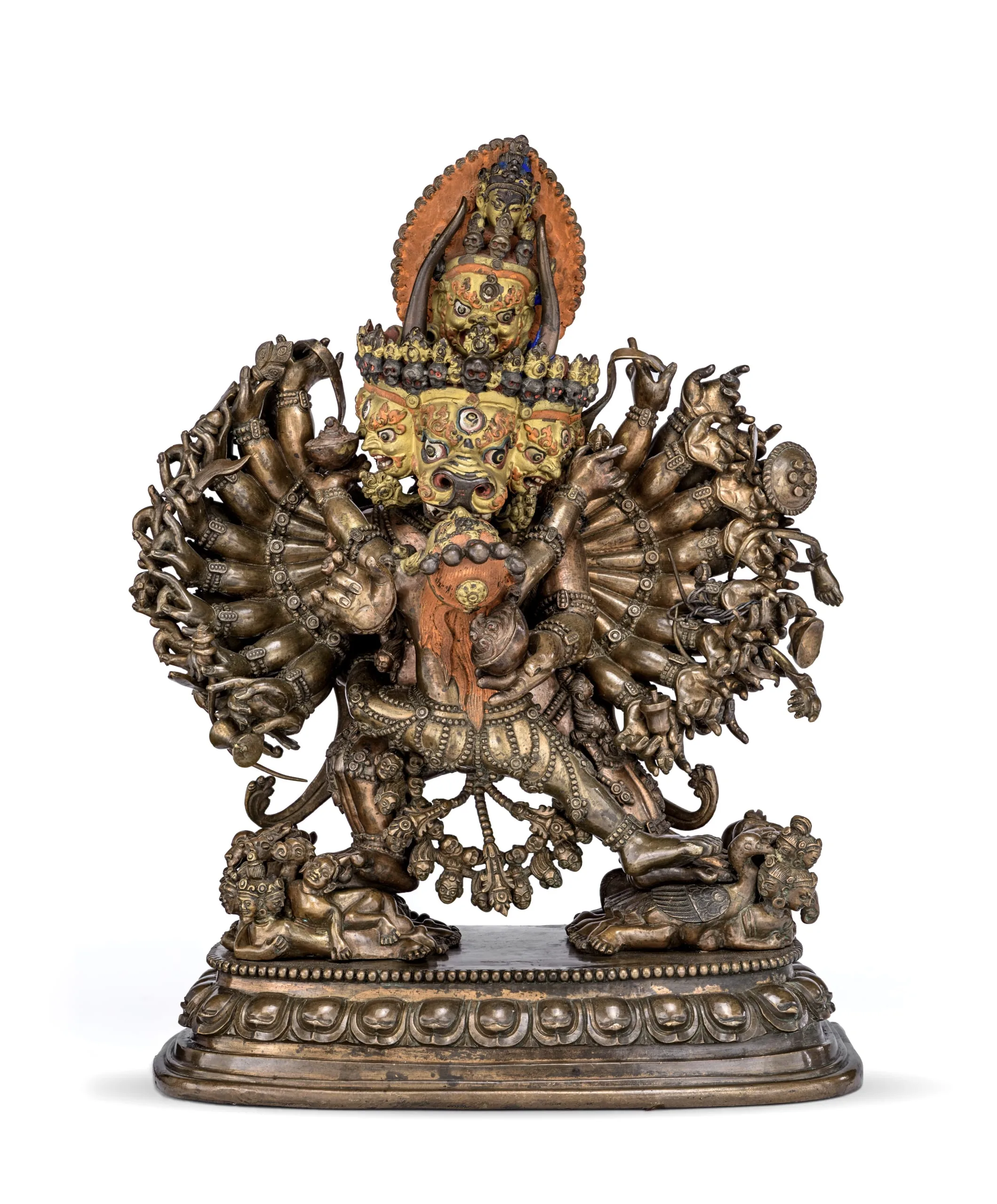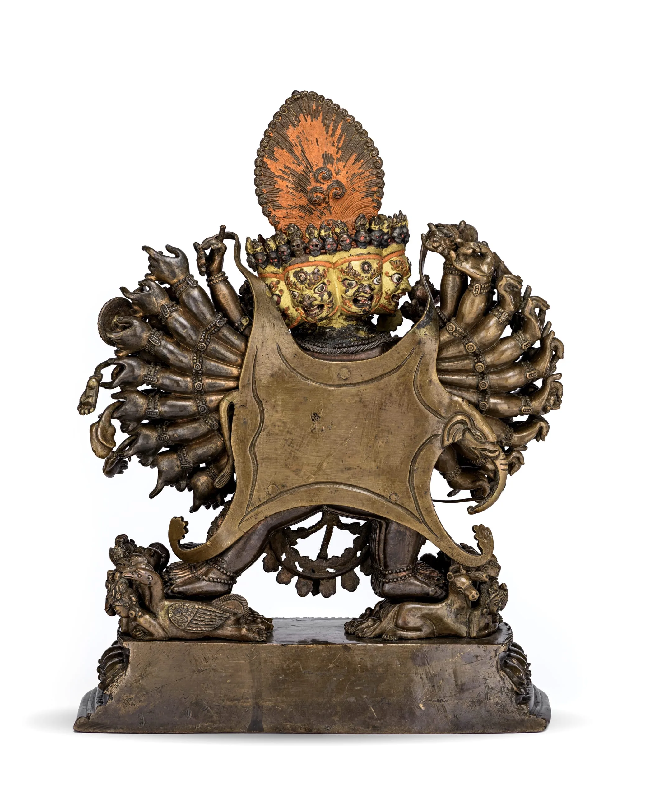The complex image is cast in sixteen pieces and is a tour de force of Tibetan metalworking. See also M.77.19.8, M.79.243.1-.3, and a comparable 18th-century brass sculpture in the British Museum, London (1880.157).