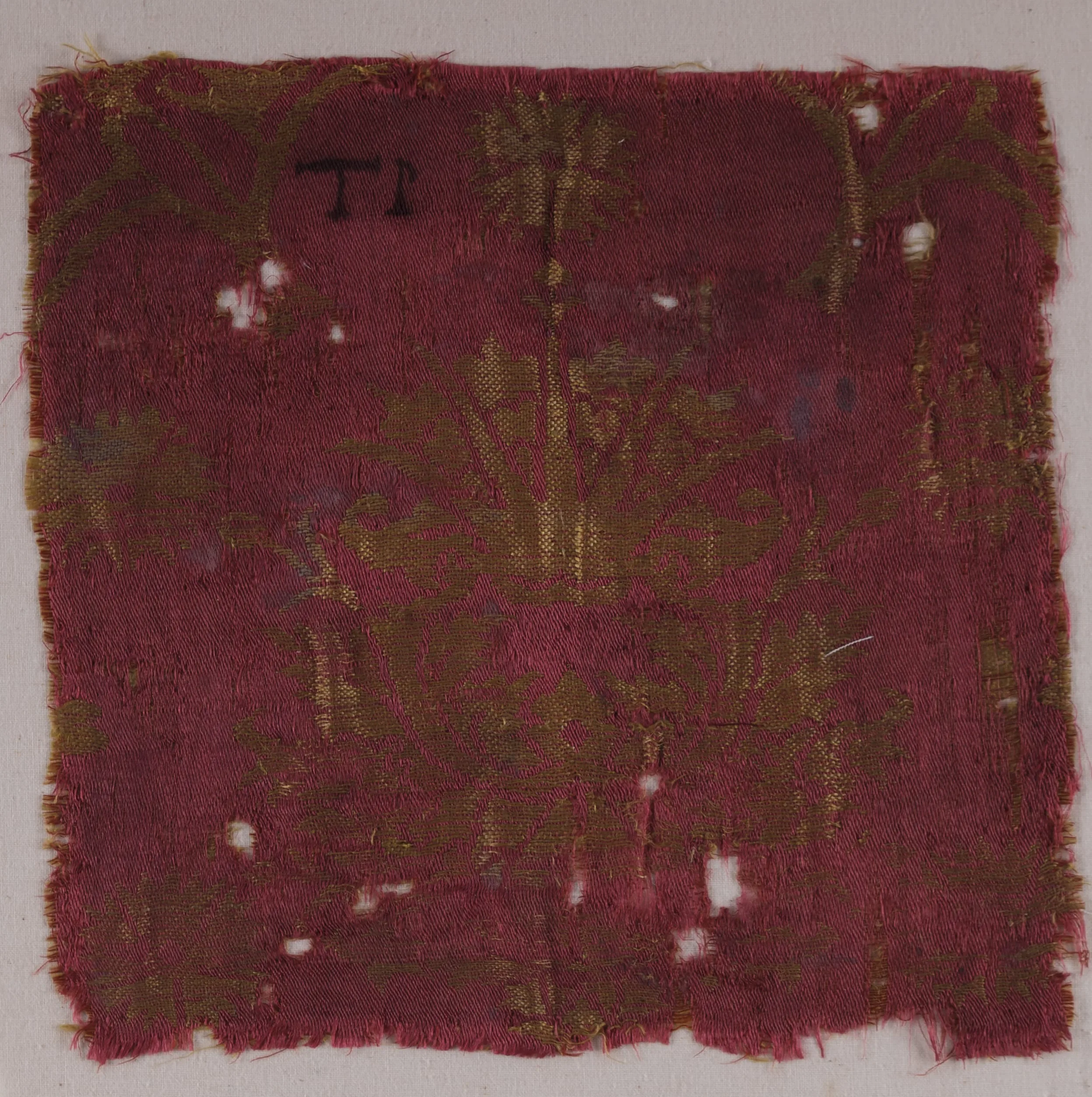 - Silk satin with silk supplementary-weft patterning bound in plain weave (lampas)