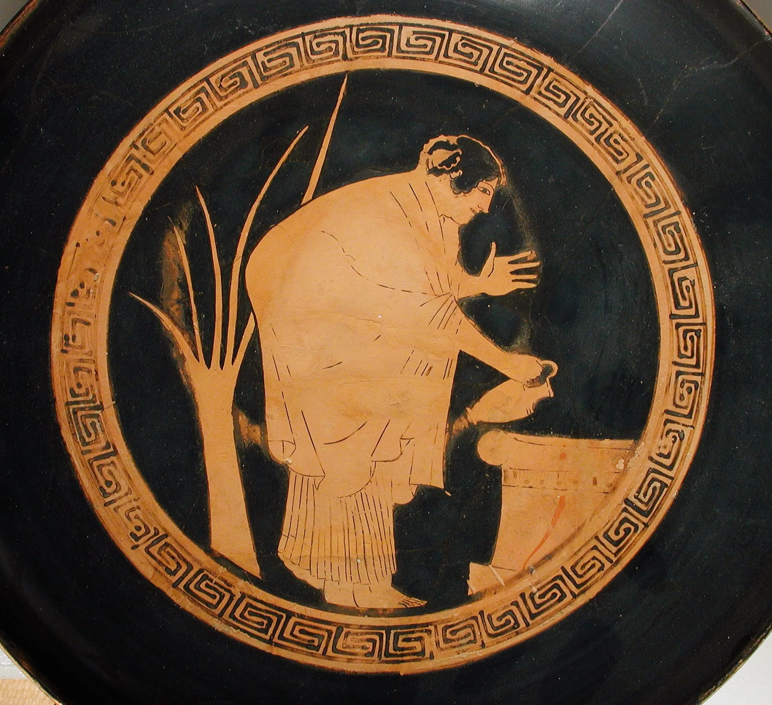 - Red-Figure Cup with (A) Three Youths, (B) Two Youths and a Man, and (tondo) Woman Pouring an Offering at an Altar