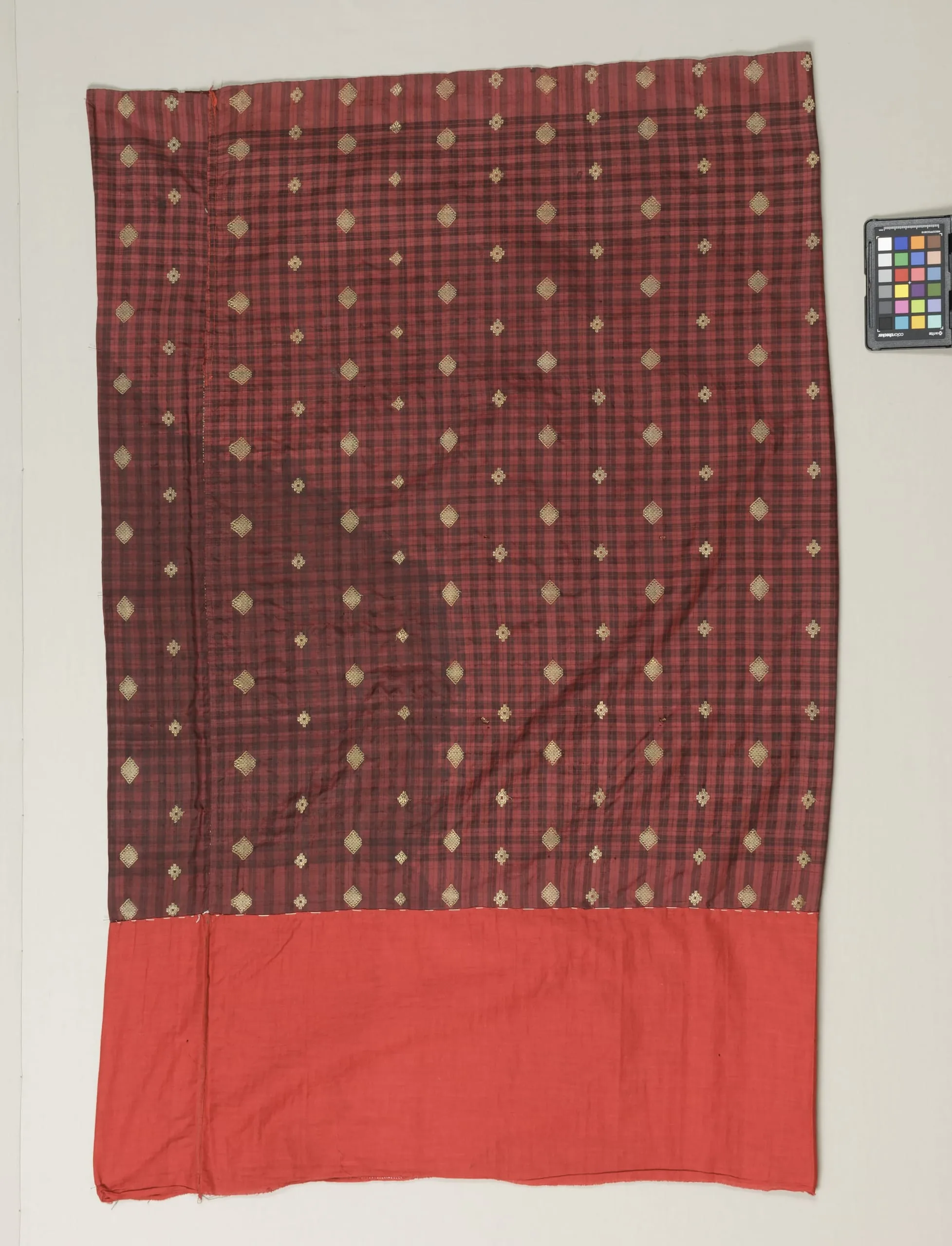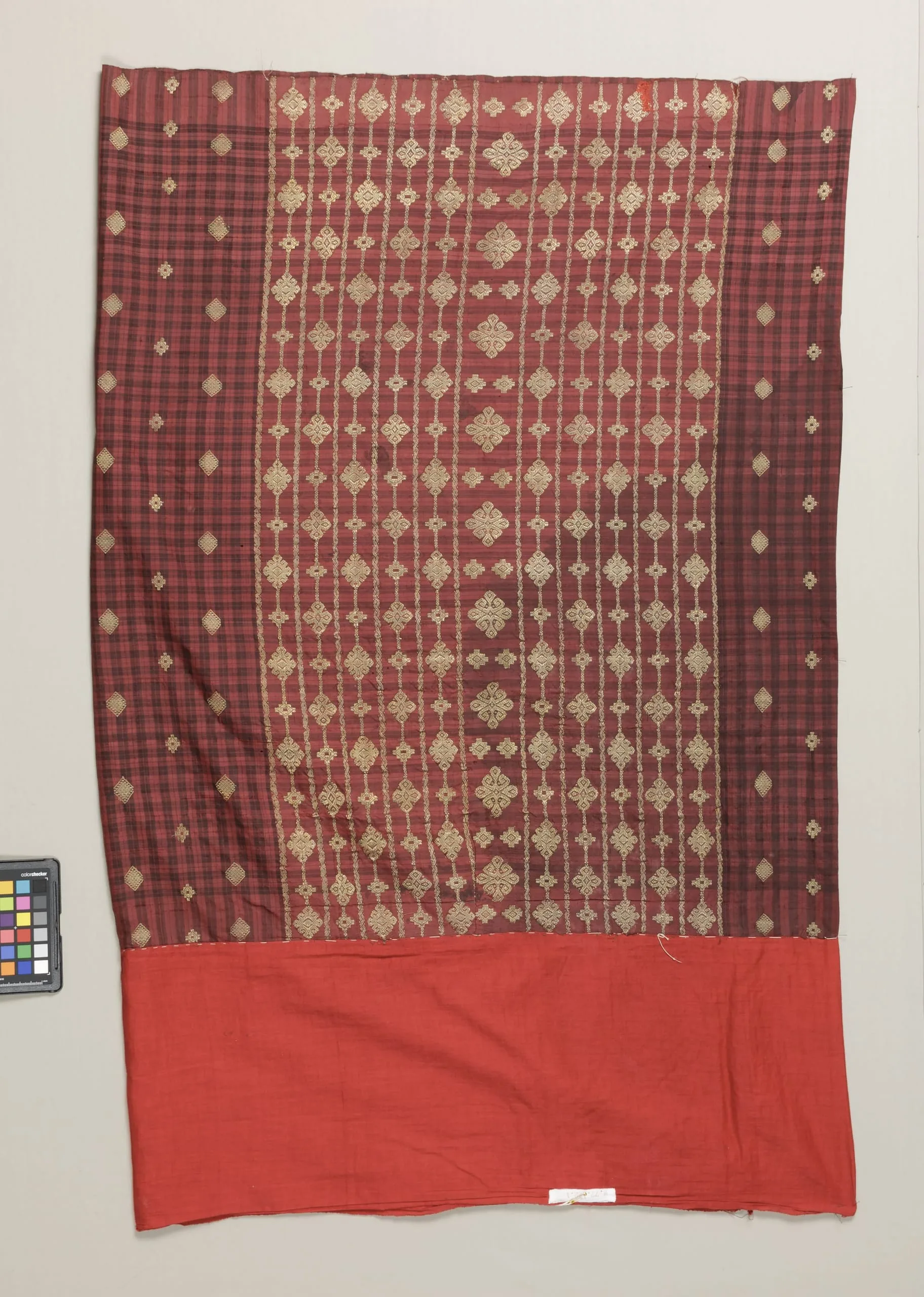 - Silk plain weave with metallic-thread discontinuous supplementary weft patterning (brocade)