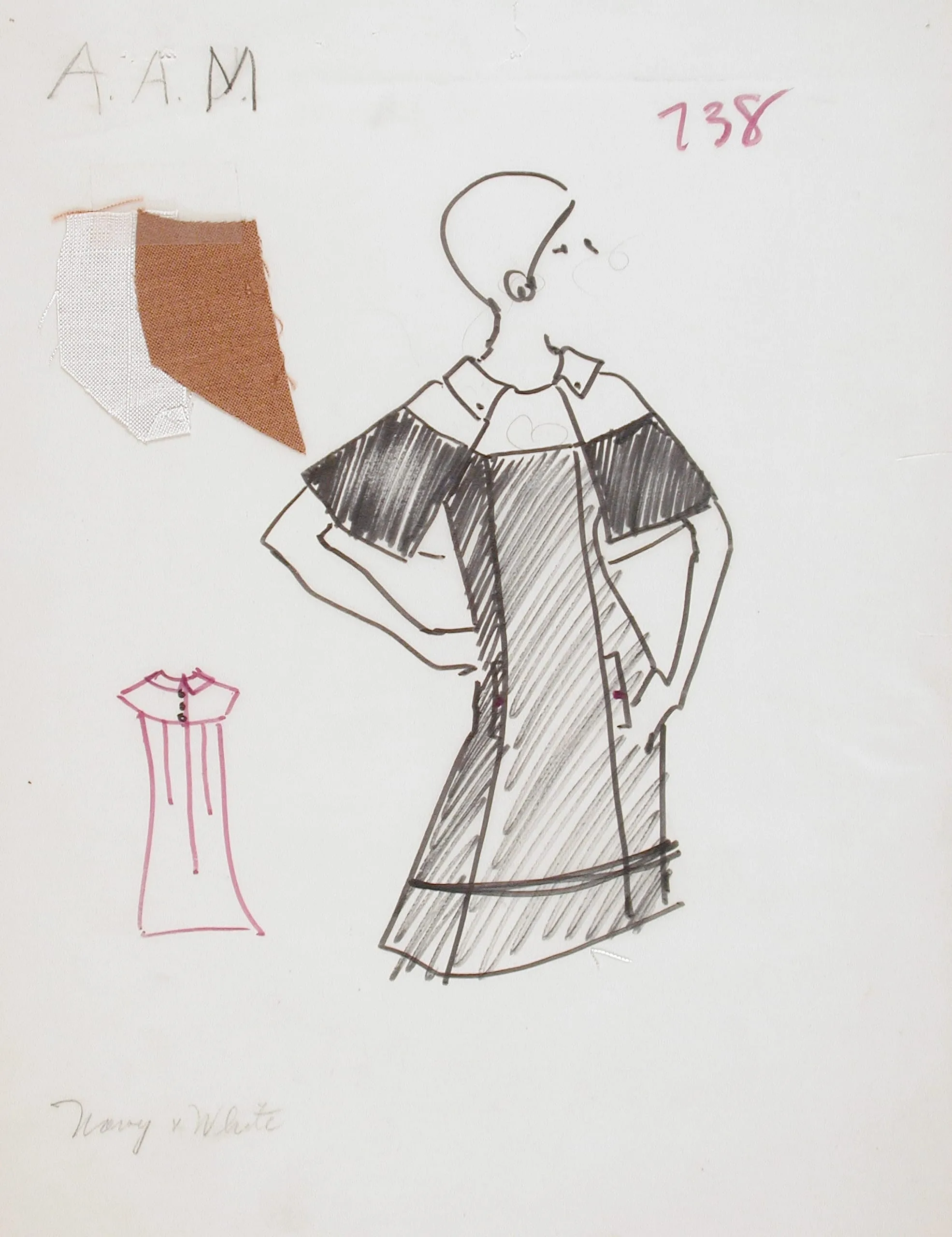 - Fashion Sketch for Rodney Owens Collection, 'Mainly in the Plain Silks', Style #738