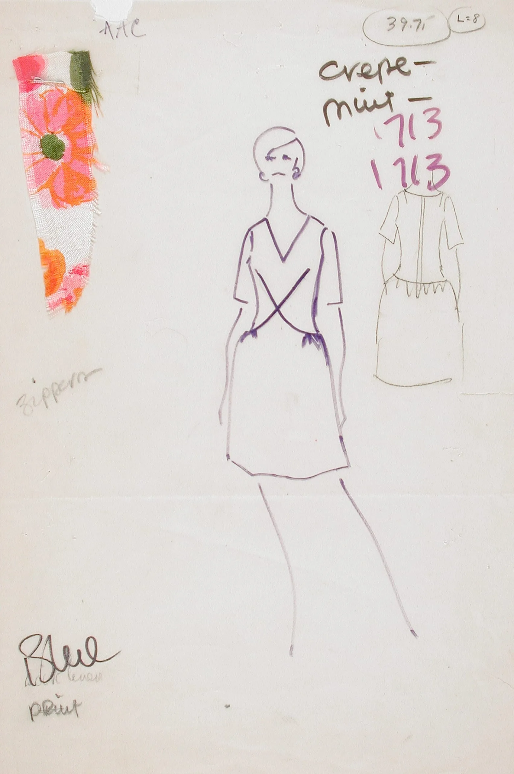 - Fashion Sketch for Rodney Owens Collection, 'Mainly in the Plain Silks', Style #713