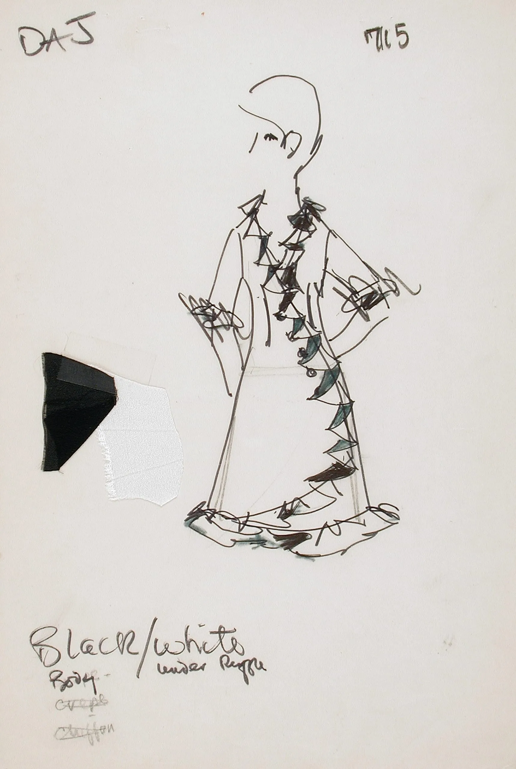 - Fashion Sketch for Rodney Owens Collection, 'Black and White and All That Jazz', Style #715