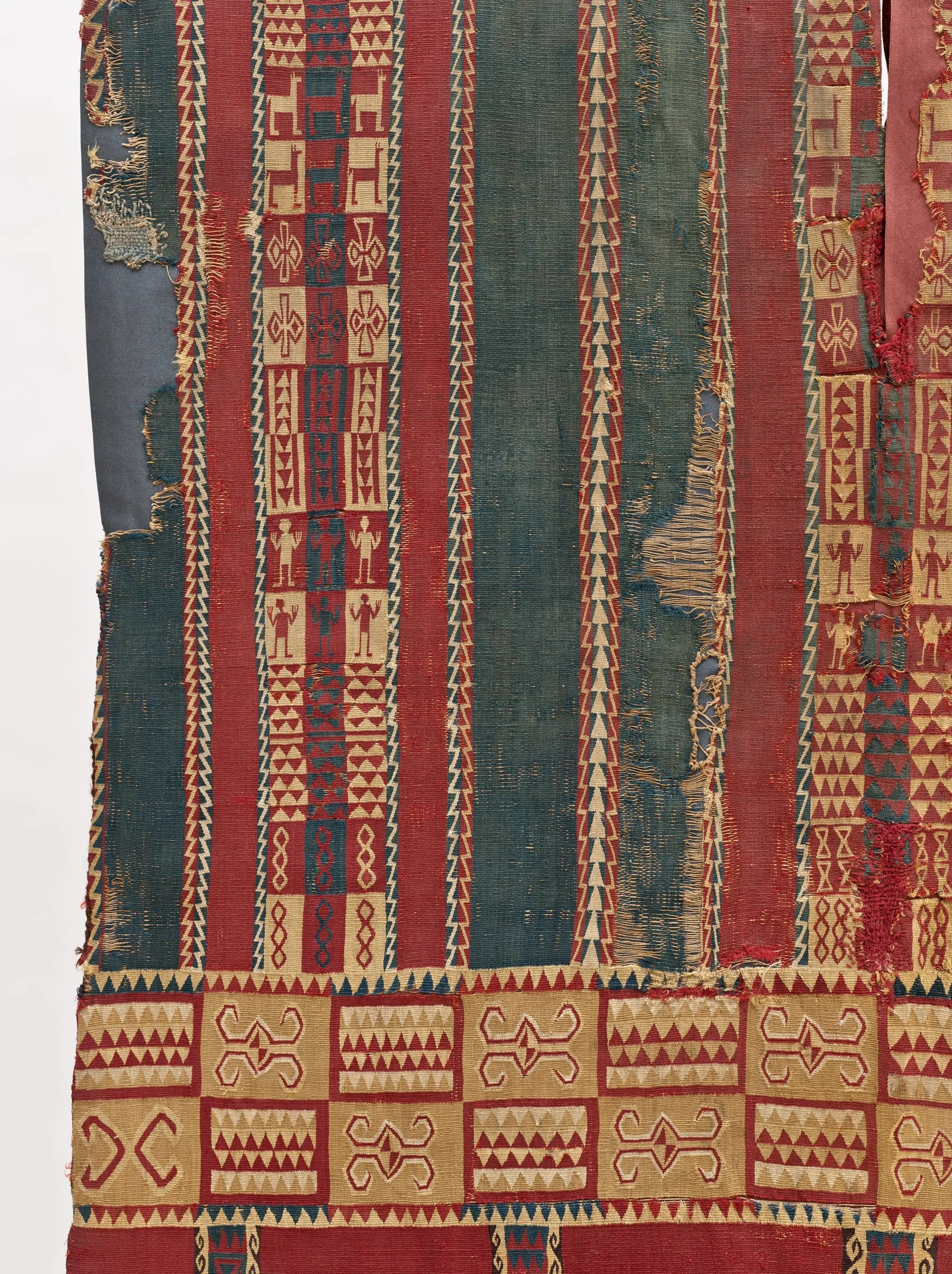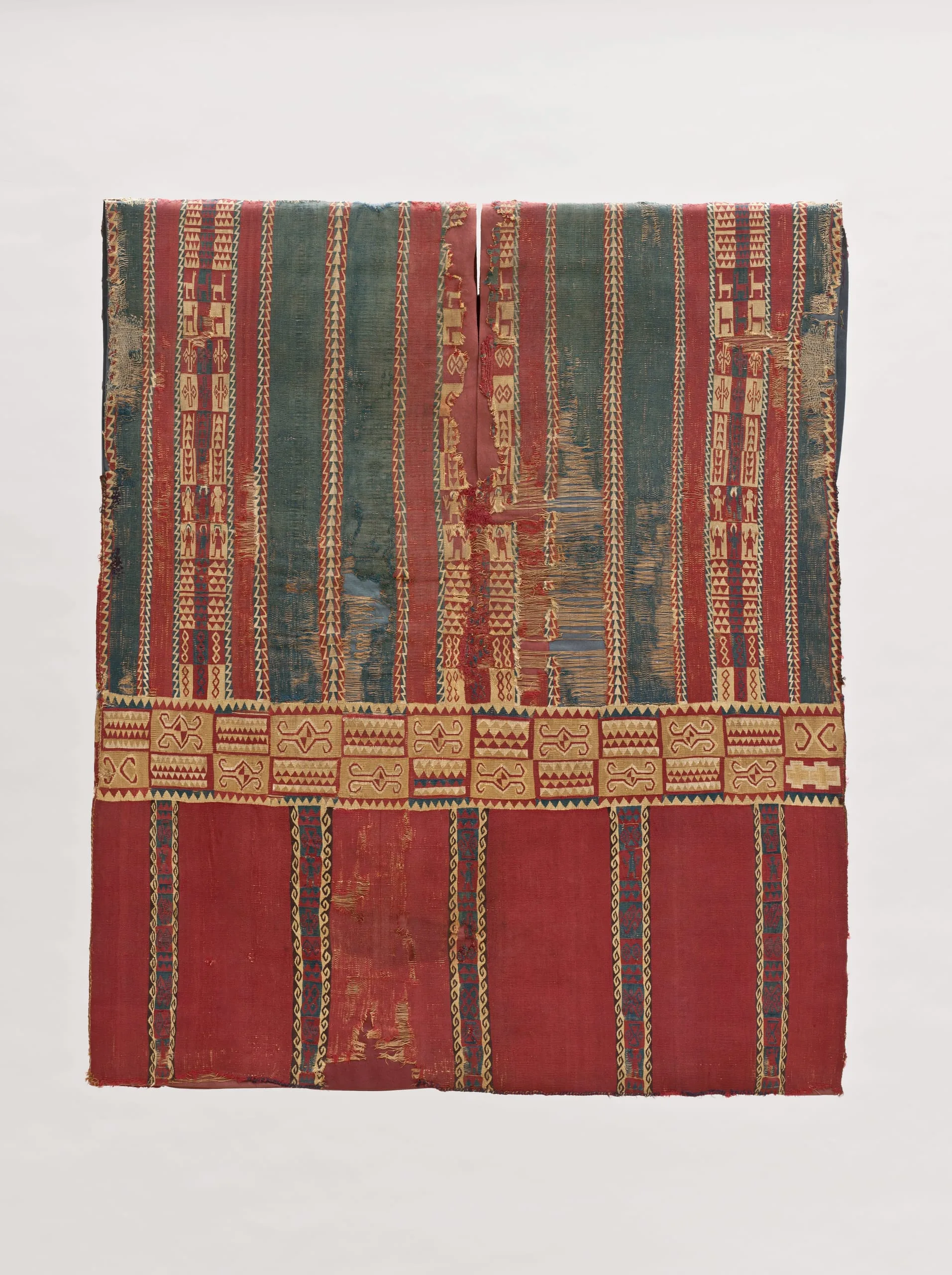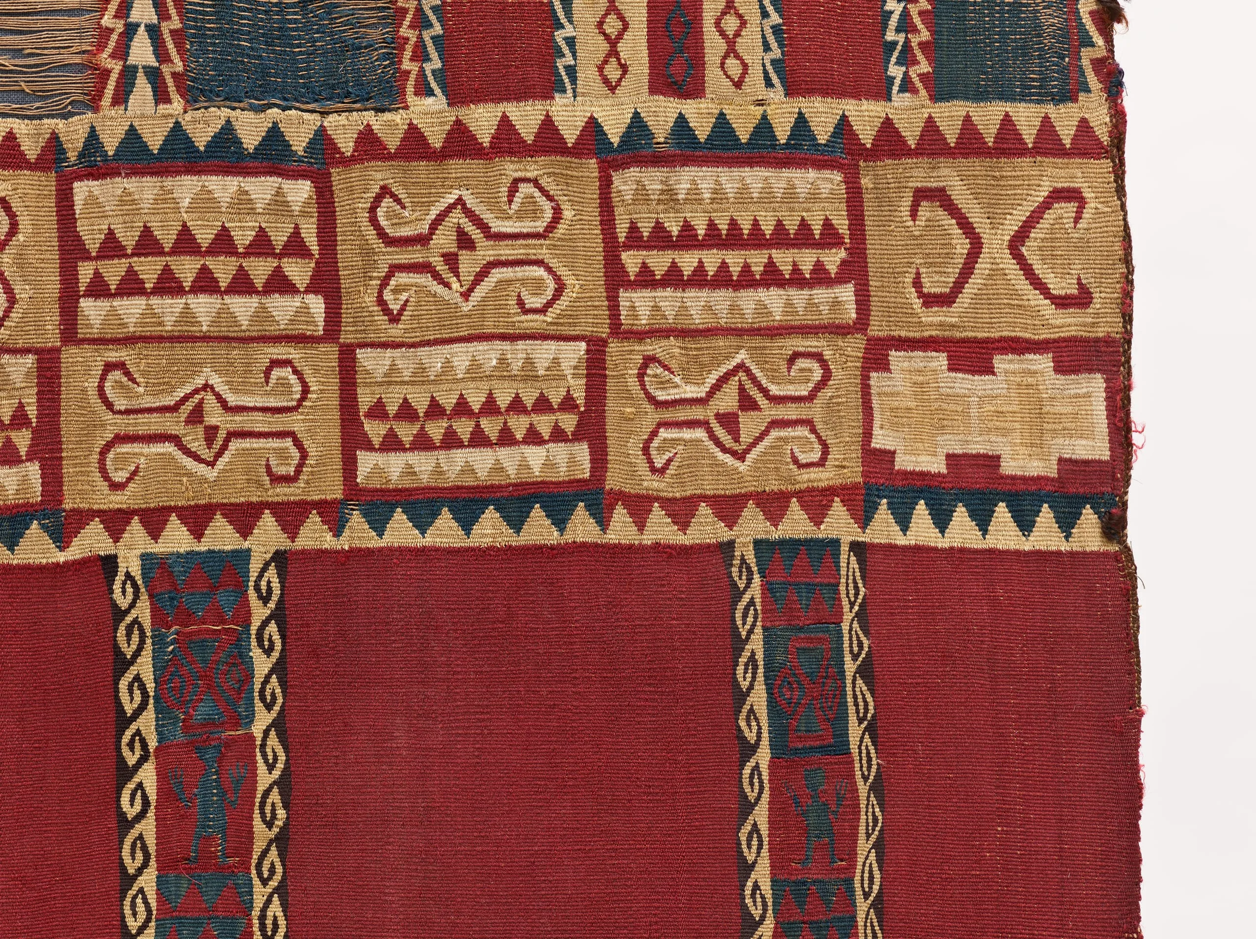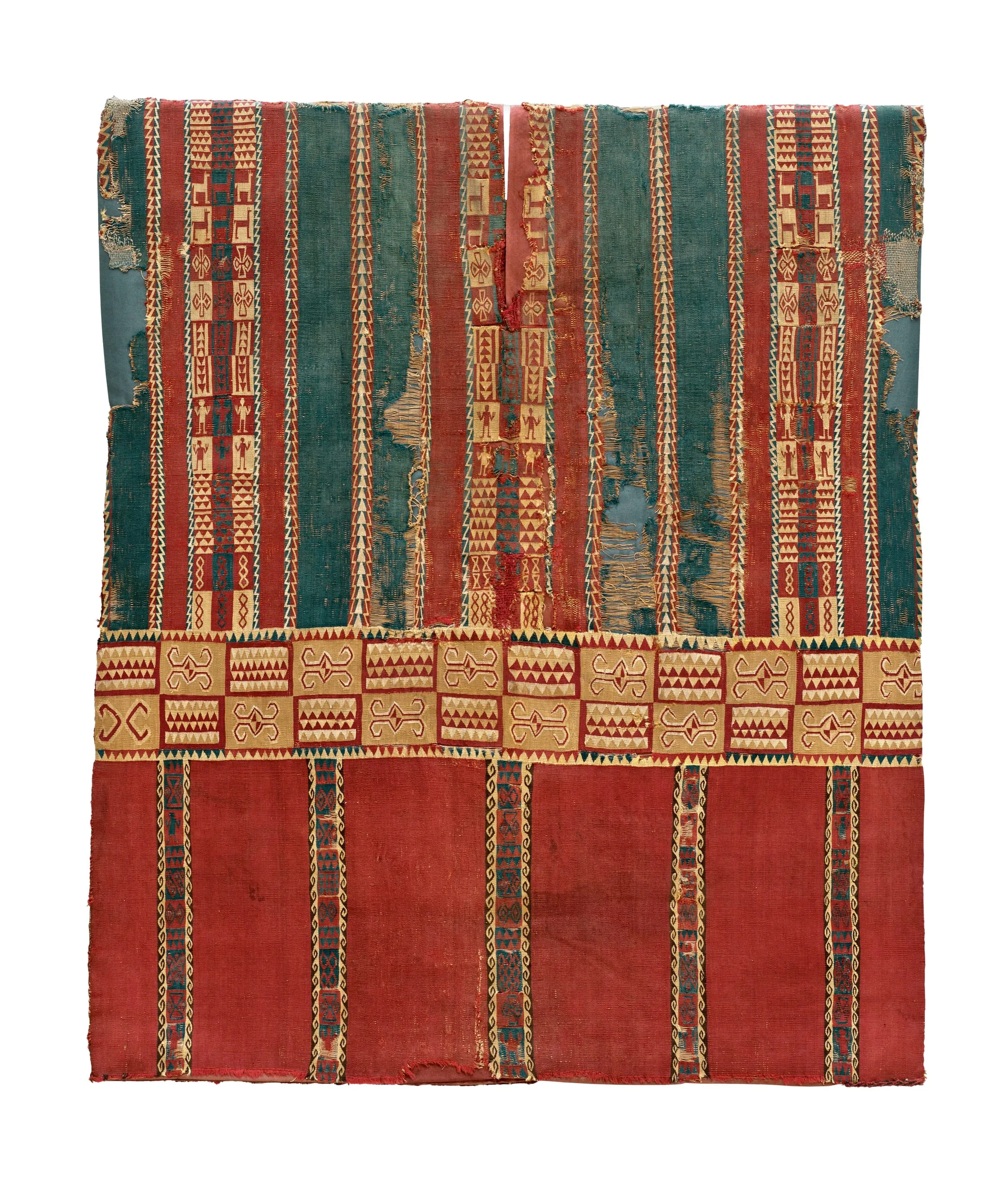 This masterfully woven man’s tunic (uncu) was made by weavers trained for the royal Inca workshops, possibly in the southern Andean highlands. Created in the period straddling the end of the Inca Empire (c. 1438–1533) and the arrival of the Spaniards in the first half of the sixteenth century, the tunic draws from a complex set of social, political, and artistic traditions. With its intricate decorations—including its central waistband with Inca-style tocapu motifs (originally a form of rank insignia)—the tunic would have signaled the high status of its wearer.