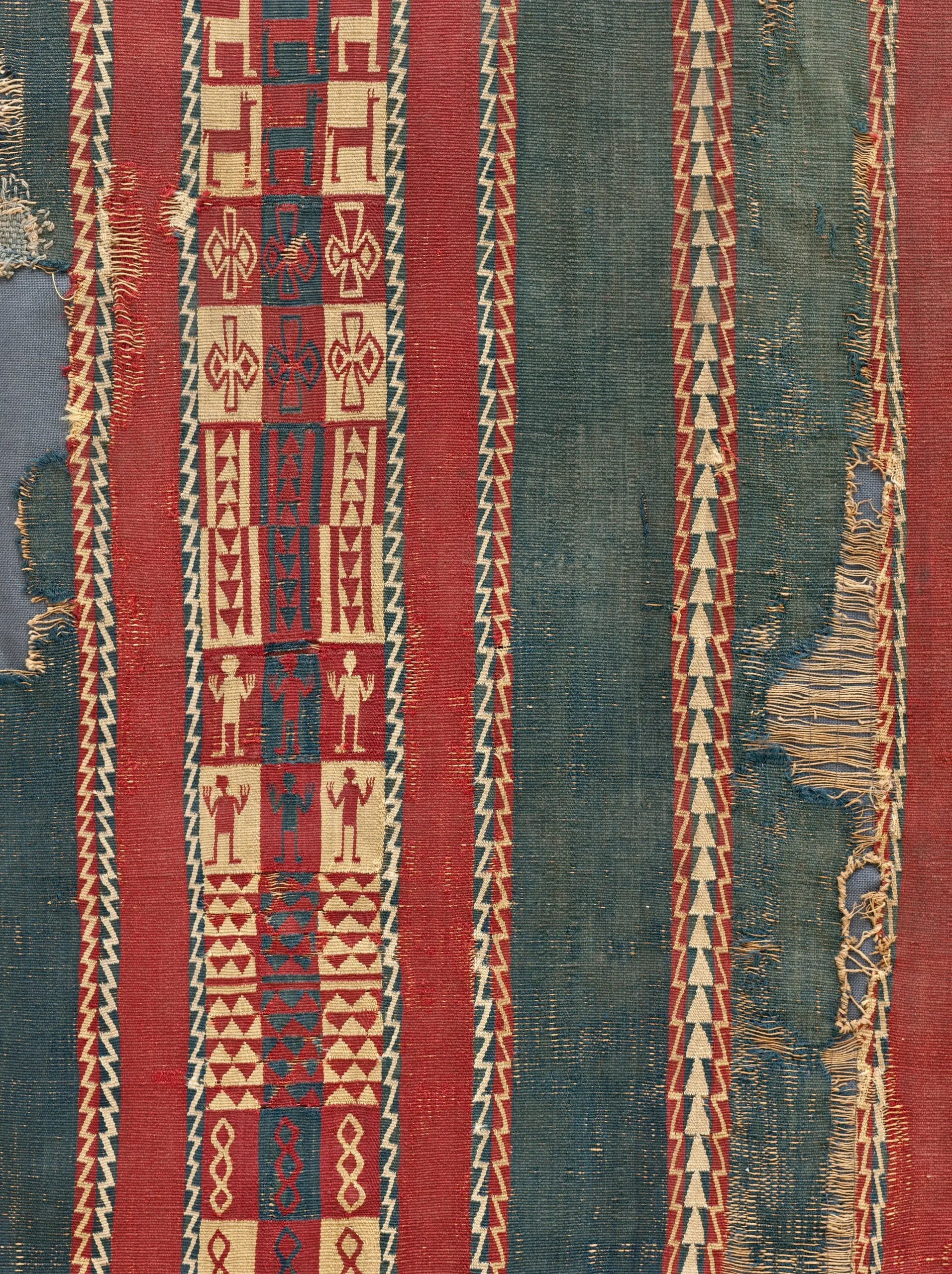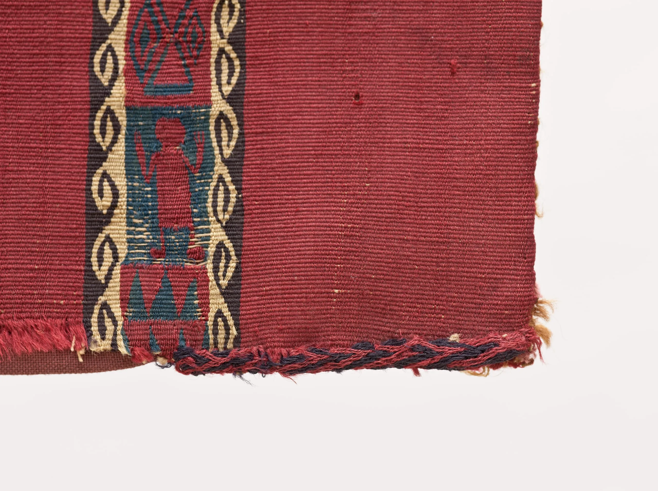 - Camelid-fiber and cotton tapestry weave, with cross-looped embroidery and braided edging