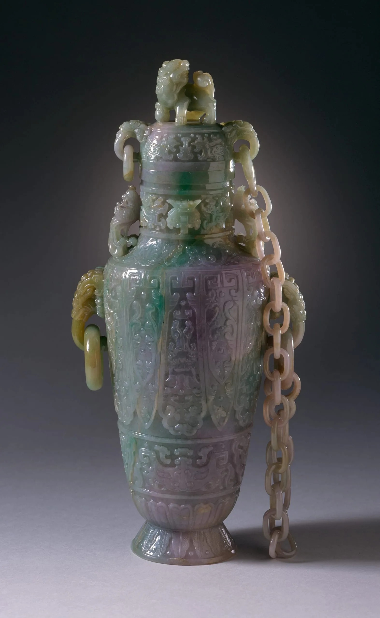 - Lidded Vase (Ping) with Lion, Phoenixes, Felines, and Masks
