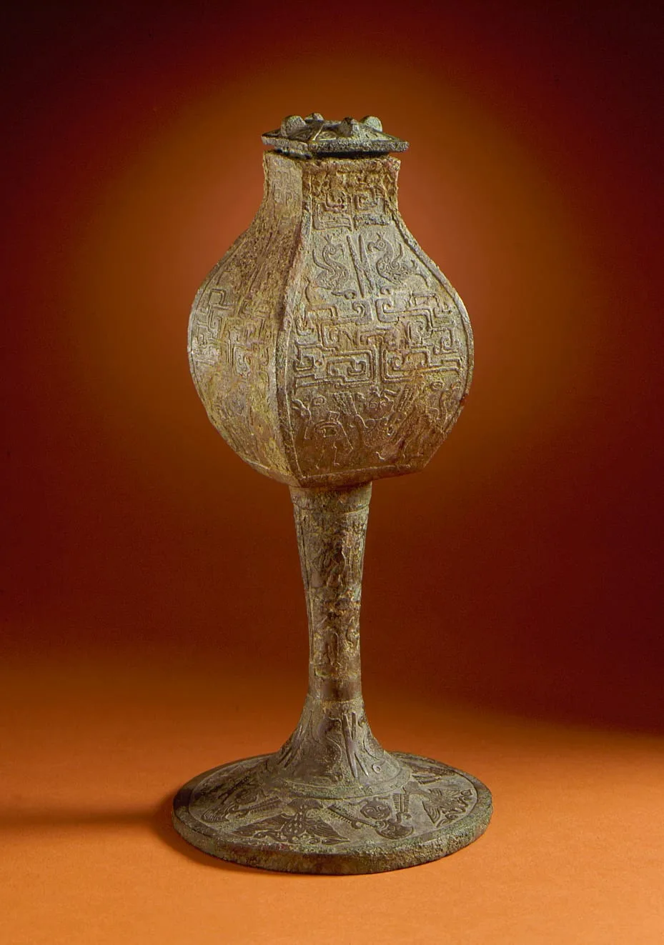 - Lidded Square Wine Jar (Fanghu) with Natural and Supernatural Creatures