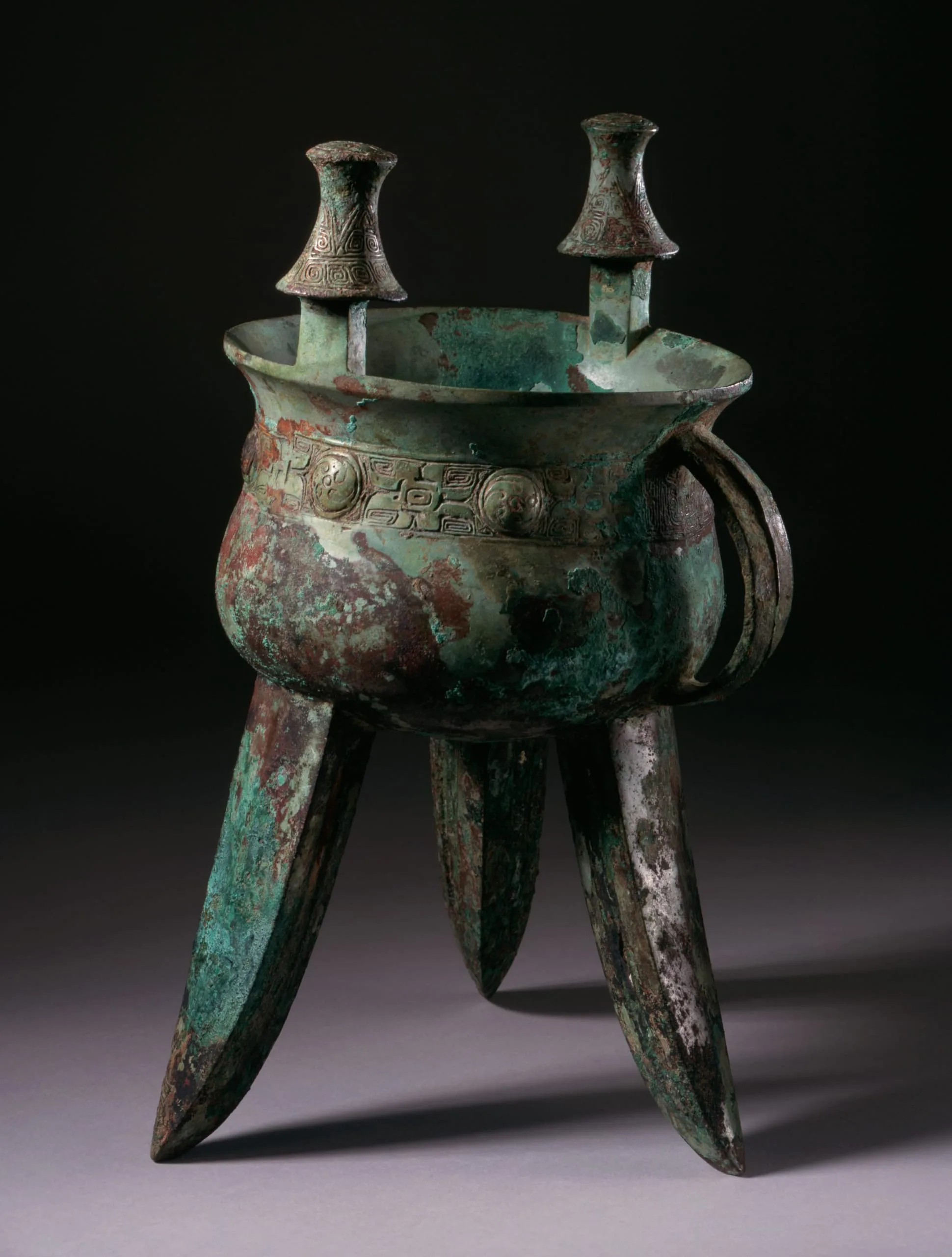 - Large Ritual Wine Warmer (Jia) with Whorls and Spirals