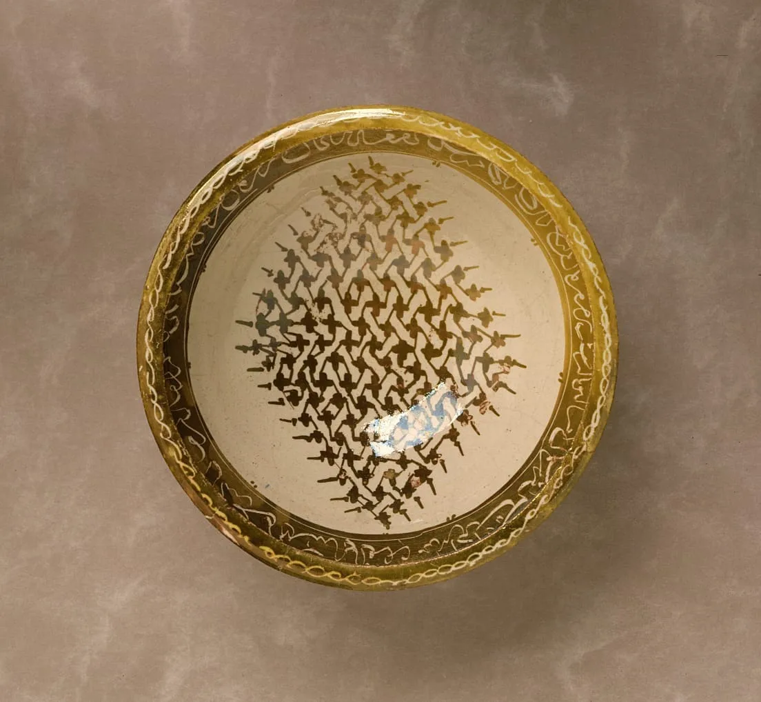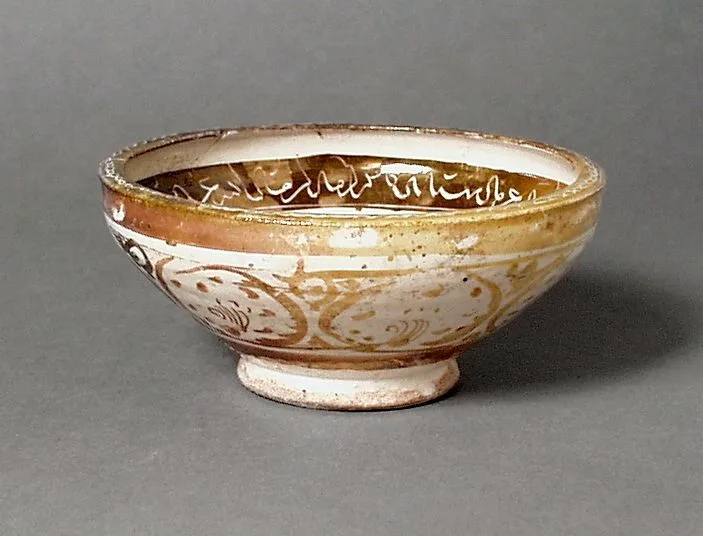 - Fritware, overglaze luster-painted