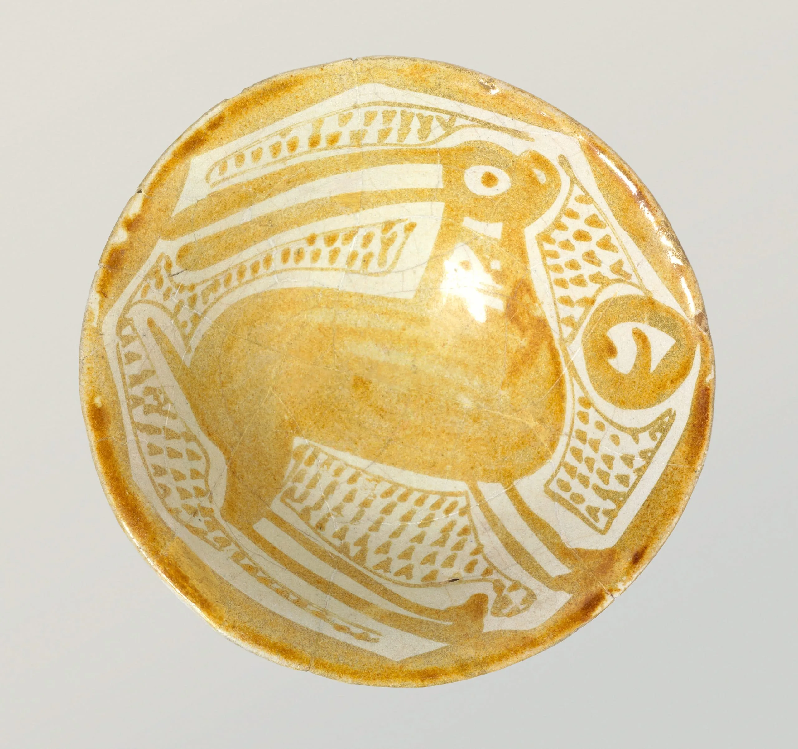 Similar to the use of a rabbit’s foot today, the hare was a symbol of good luck in the medieval Islamic world, particularly in Fatimid-controlled Egypt and Syria. The animal is depicted on many objects from the period, including this luster bowl, where its presence was meant to bring good fortune and perhaps protection to the object’s owner.