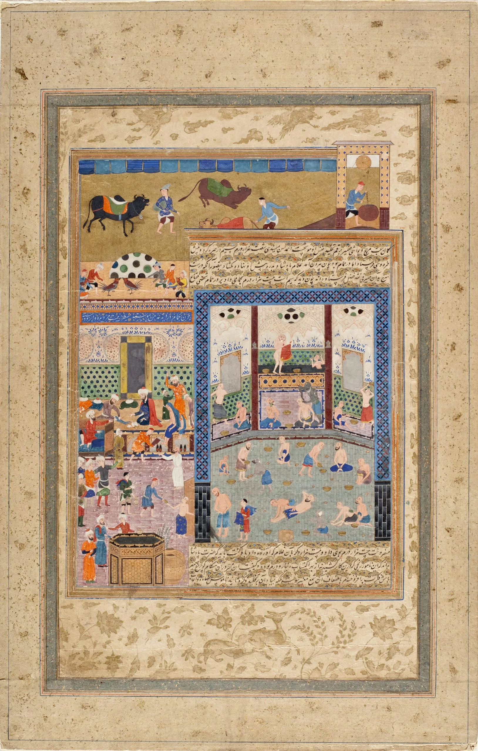 - Firdawsi Receiving Wages in a Bathhouse, Page from a Manuscript of the Shahnama (Book of Kings) of Firdawsi