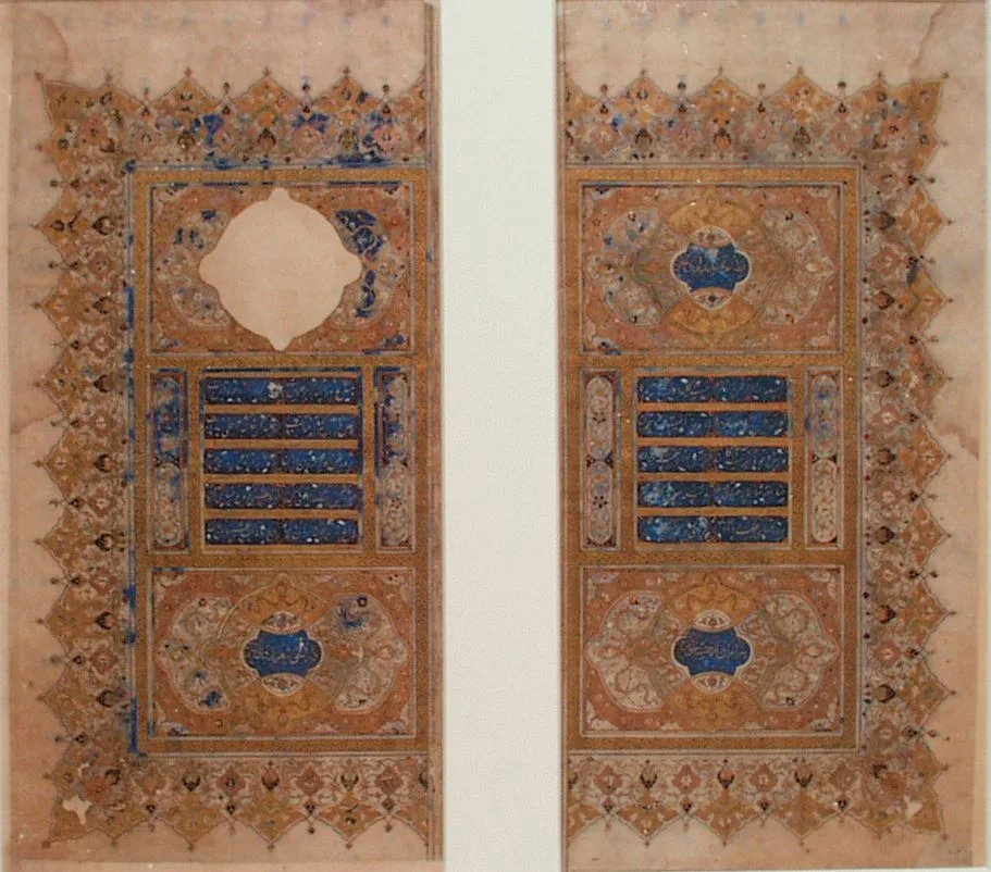 - Double Page Illuminated Unwan (Frontispiece) from a Manuscript of the Khamsa (Quintet) of Nizami